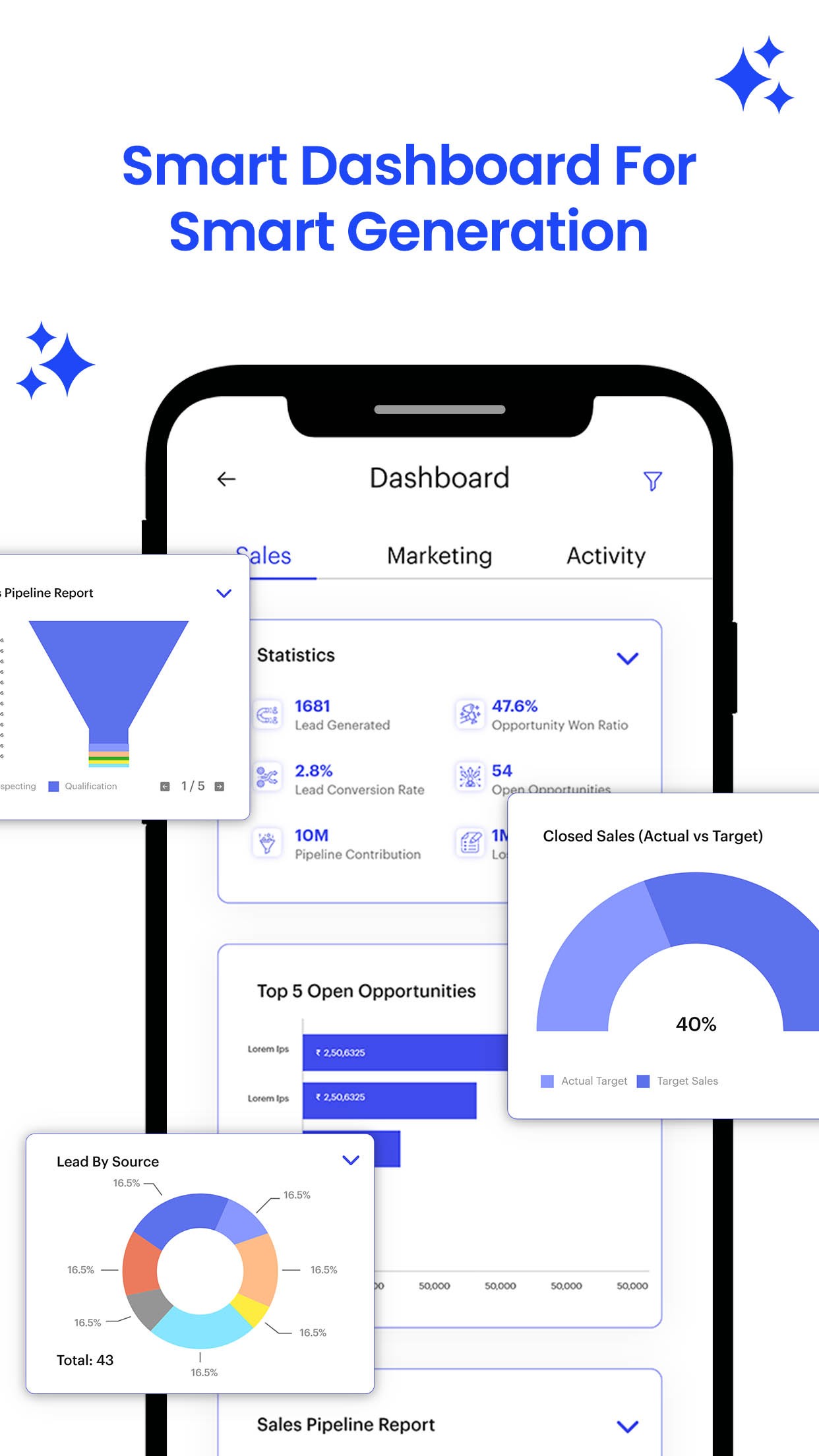 This CRM app is designed to manage all your manual activities, activity update, sales automation, invoicing, daily timesheet, email marketing, marketing automation, support system, task management, track your sales, sales forecast, and much more at a single platform. We understand the nature of the business, and every business has different requirements. This CRM software app delivers faster results with services tailored to your business needs. You can customize the features in your sales dashboard as per the requirement of your business.