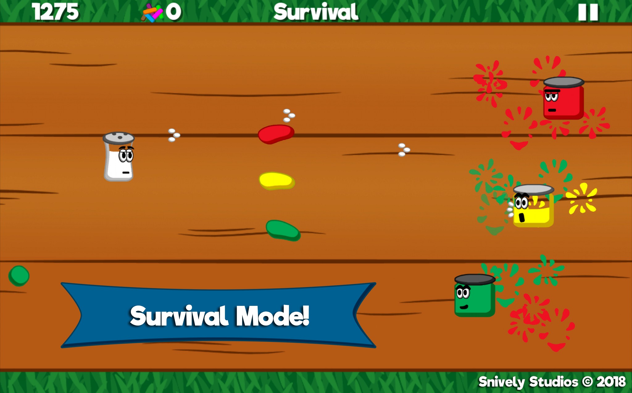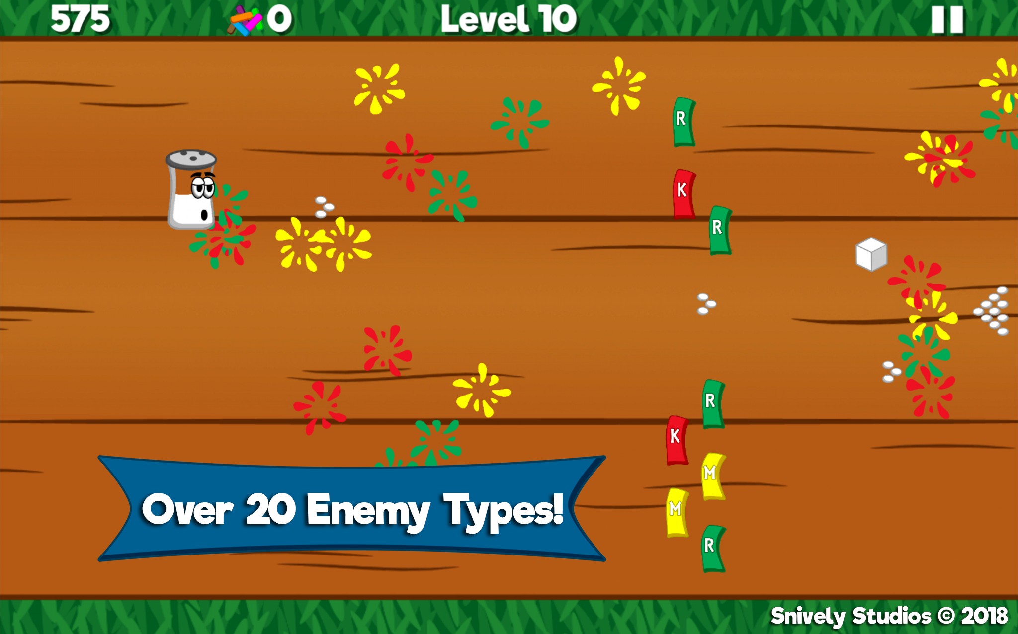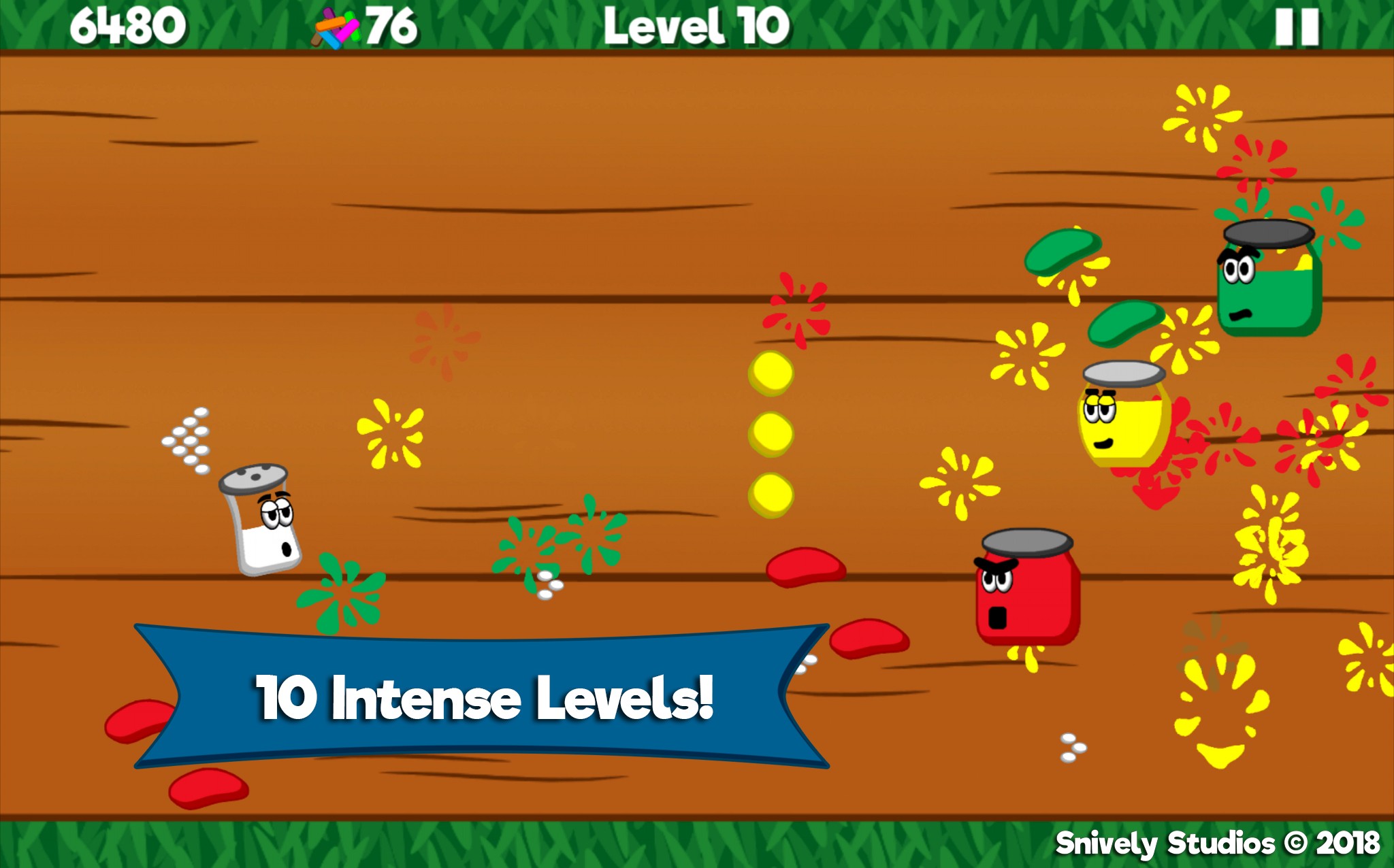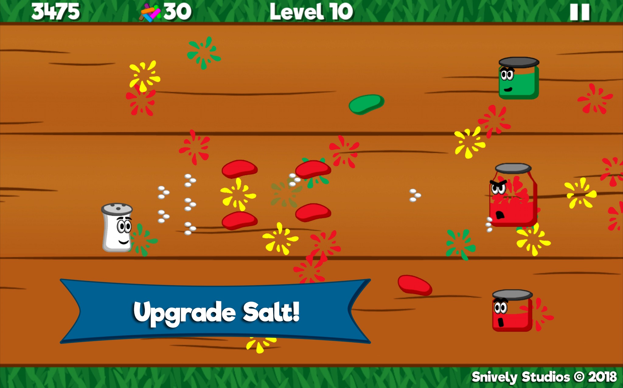 Angry jars have stolen Pep! A clash with the condiment clans of Ketchup, Mustard and Relish is underway. Help legendary action hero Salt, get revenge and free Pep! Start your adventure and unlock powerful upgrades when you collect sweet sprinkles. Only you can reunite the fan favorite combo of Salt and Pep! Download for FREE and help Salt save Pep!