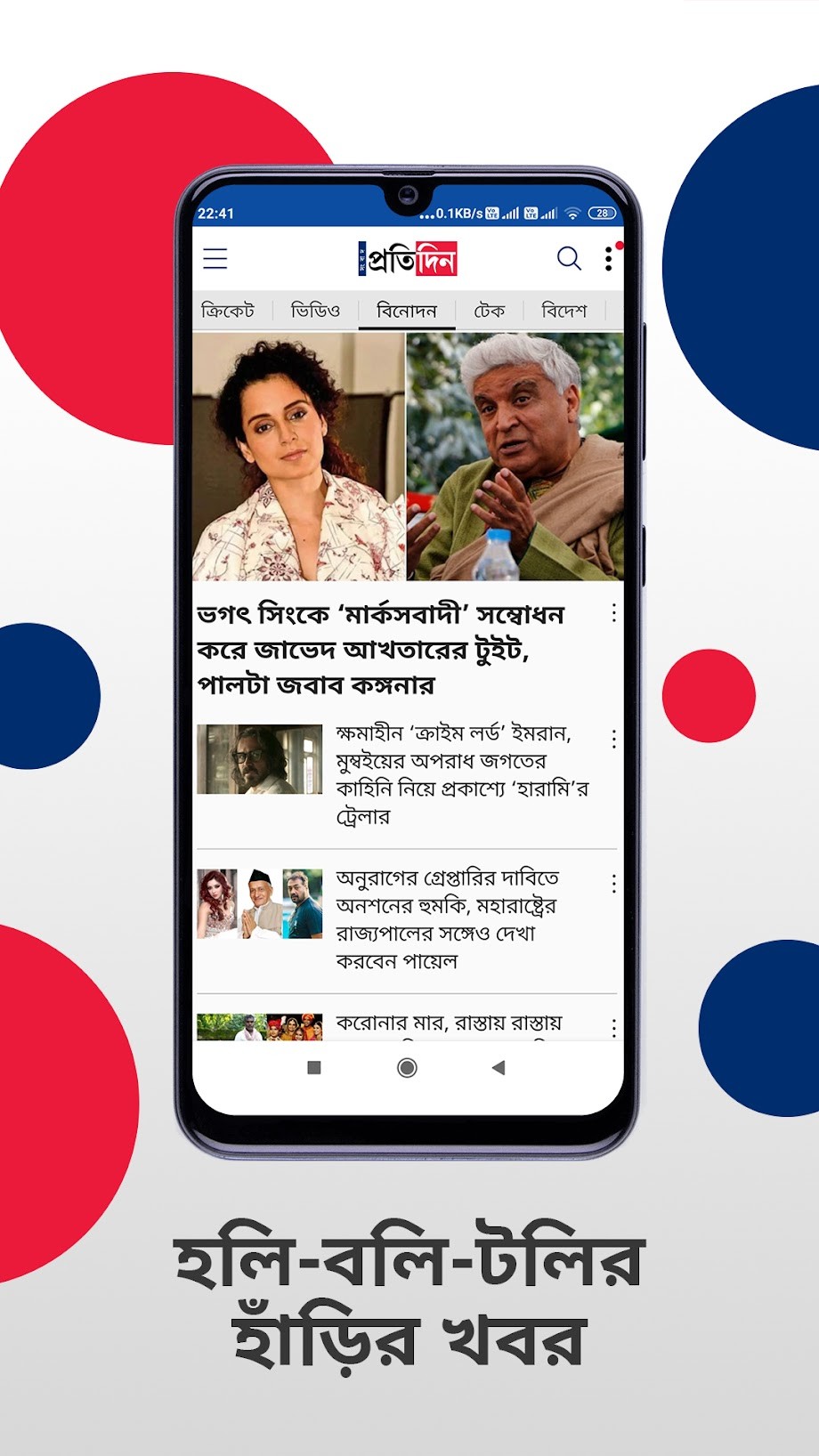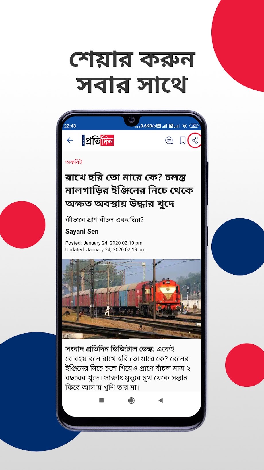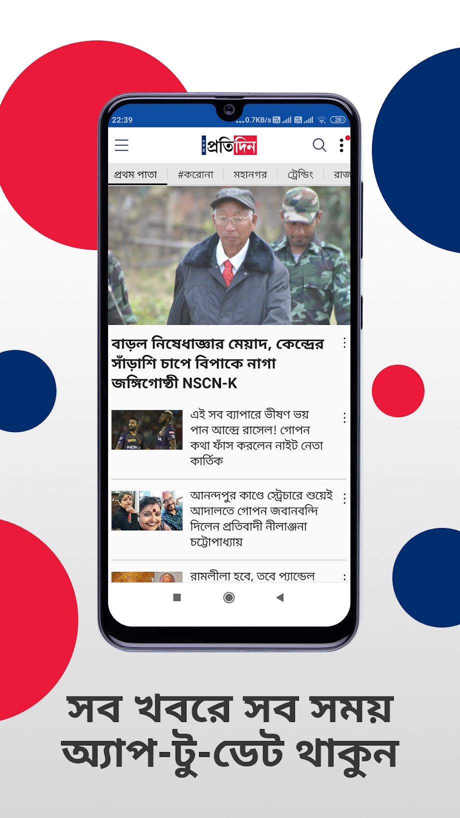 Sangbad Pratidin is a leading Bengali newspaper published from Kolkata, India. This is the official Bengali news app of Sangbad Pratidin and it provides its readers with the latest news in Bangla from Bengal, Bangla News live updates, breaking Bengali news, Bengali news headlines, trending Bengali news, latest news in Bengali from India and around the Globe, on the go, wherever they are.