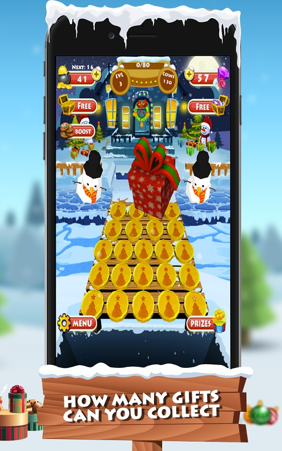 Santa Claus house has turned into a Coin Pusher Party for Christmas. Help elves & snowmen by collecting Christmas gifts & gold coins. Complete your collection of 3D Christmas prizes including Christmas tree, garlands, ornaments, glow orbs, stockings, stick candy & many more. Join this Christmas party of dancing snowman. How many Christmas gifts can you collect?