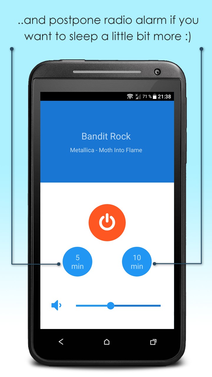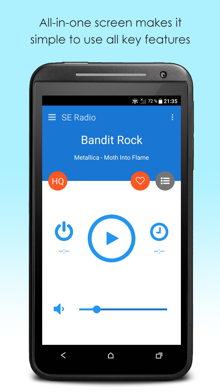 Have you already been tired of the same alarm sound, beeping every morning? You can use SE Radio also this way! Just choose your favourite Swedish radio station and time, when alarm should be triggered and wake up every sunrise to a different music. In case you loose access to the internet over night, don't worry, application will wake you up with the default tone of you smartphone. On the other hand, if you like to fall asleep while listening to some music, but you don't want to leave it playing whole night, you can easily set it to shut down automatically after the chosen time.