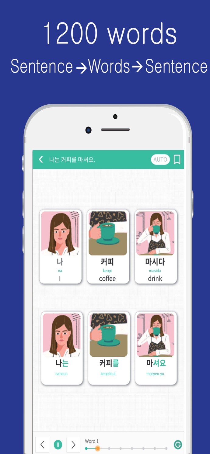 There are 5 characters within the 650 sentences that share stories of everyday life. These characters create relationships of friendship and love between each other. These characters will foster your desire to keep on learning Korean language.
