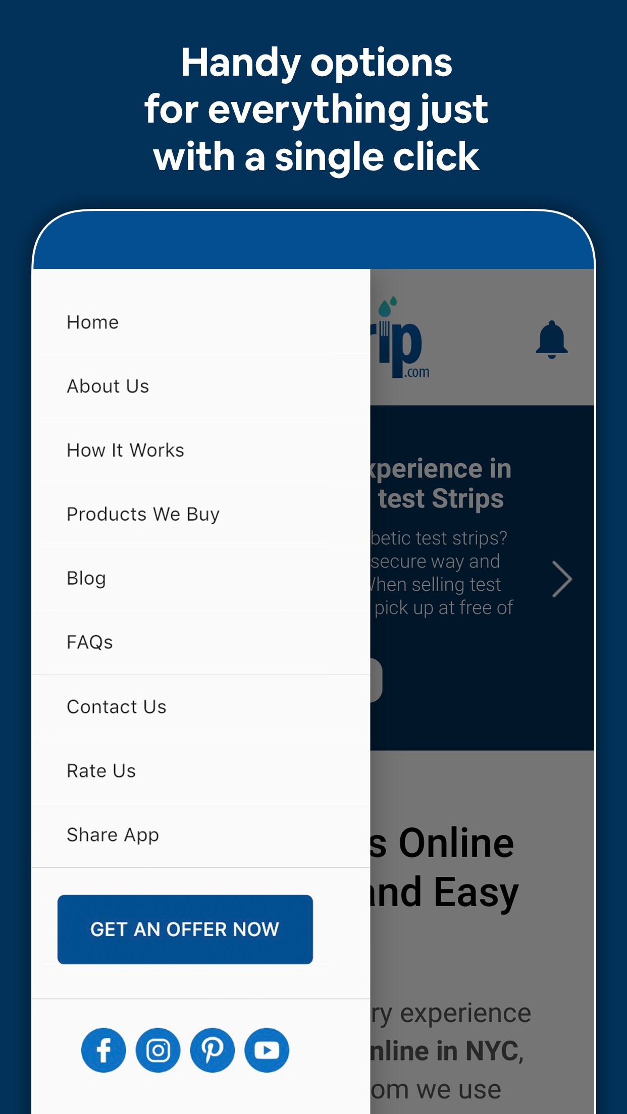 An app created to make it easy for customers that want to sell their diabetic test strips without any hassle. Our goal is to make it as easy as possible for our clients to be able to sell their test strips right from there phone without having to looking around who to sell to. we will always be on the client’s phone whenever they need to sell their strips for extra cash.