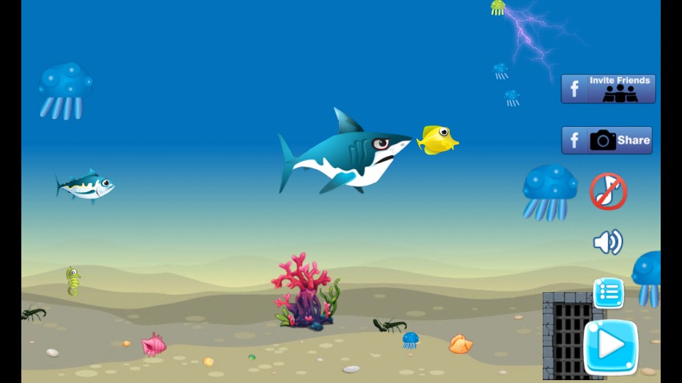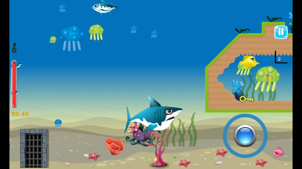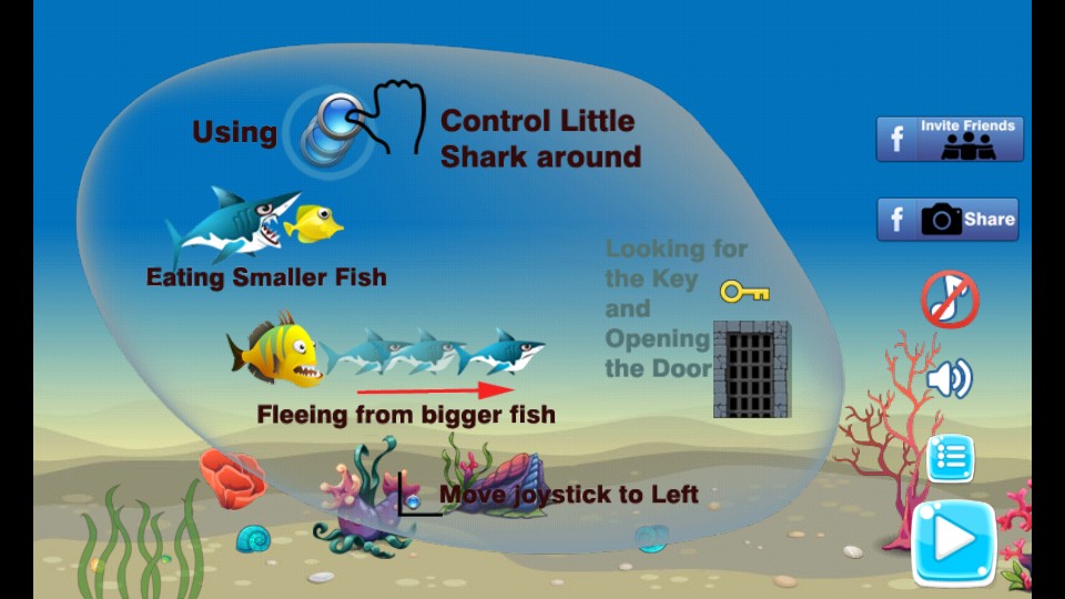 In the deep blue sea, a tiny shark lost his shoal, to survive in a world that big fish eats small fish. Little Shark has to eat smaller sea animals to grow up and fleeing others bigger and find the way to come home by get the yellow key and open the door he see on his journey.