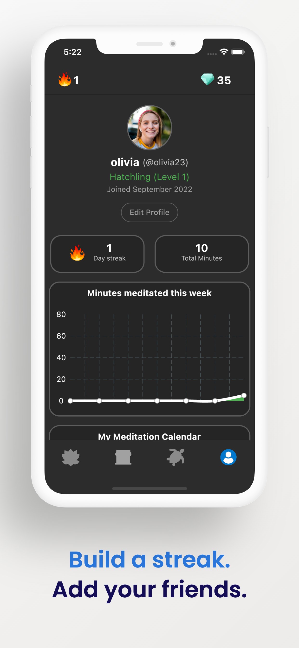 Make meditating into a habit with Shellevate, the meditation app you'll get addicted to. Build a streak by meditating consecutively, earn gems to purchase streak freezes in case you miss a day, and coolest of all, collect and raise turtles from their eggs. The longer you meditate, the rarer the turtles you can find. It's turtle-y awesome. Hopefully you have a shell of a time building one of the most useful habits you can.