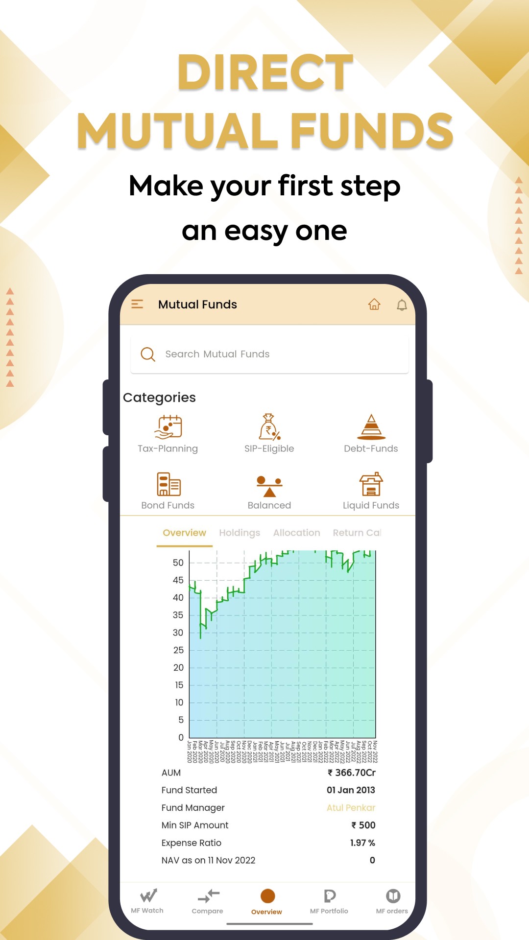 • Users can check the details of Mutual Funds, like their holding, allocation, etc.