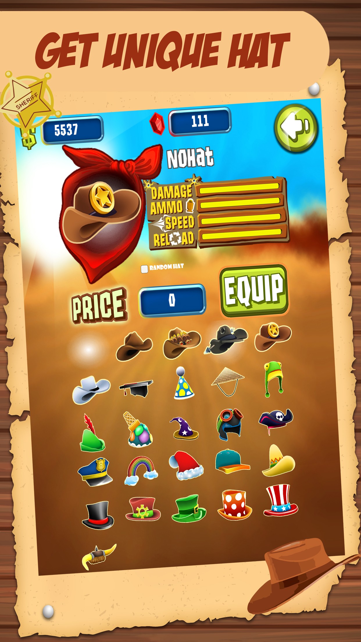 As a Cowboy you also will be able to ride on a bull that will give you invulnerability for some time and the ability to overcome any obstacles. Collecting money along the way, you will have the opportunity to purchase improvements for bonuses, weapons, hats and discover new characters. Extraordinary Stetsons and other prizes can be obtained free of charge from the chest, which is available to each player.