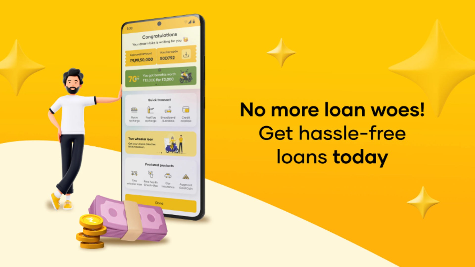 Fixed Deposit, UPI, Bill Payments, Recharges, Loans, Insurance & More Shriram One serves as your dependable financial partner, offering a complete range of services designed for everyday use: Investments – Fixed Deposits, Fixed Investment Plans Loans – Personal, Business, Two-Wheeler, Four-Wheeler, Used Car, Commercial Vehicle & Gold Loans Insurance – Motor Insurance (2W/4W), Commercial Vehicle; Life Insurance covering Savings, Retirement, Child & Protection categories Bill Payments – Make prepaid recharges, pay electricity and utility bills directly on Shriram One UPI – Scan & Pay, transfer money, request funds, split bills, and much more Shriram One Specials – Explore Shriram One Care, and exclusive digital services Additional Services – Use financial calculators, check vehicle information, book hotels & travel tickets, view cricket scores, play games and more Investments Our investment offerings provide attractive yields, flexible terms, and a secure platform to grow your wealth. Shriram Fixed Deposit: Enjoy consistent growth with Shriram Unnati Fixed Deposit. Fixed Investment Plan: Begin your FIP journey for just ₹1,000 per month. UPI Payments Made Easy Shriram One UPI lets you transfer funds instantly by scanning any QR code. Check balance, automate payments, view transaction summaries, manage expenses, and request money effortlessly. Recharges & Bill Payments Recharge prepaid/postpaid mobiles, settle DTH, landline, FASTag, loan EMIs, insurance premiums, credit card bills, broadband, cable TV, water, and electricity bills easily through the app. Loan Solutions We offer flexible loan products to meet your personal and professional financial needs. Personal Loan: Apply for loans up to ₹15 lakhs with repayment options from 12–60 months and interest rates between 11% and 36% APR**. Illustration: Loan Amount: ₹1,00,000 (24 months @ 12% p.a.) EMI: ₹4,707 Total Interest: ₹12,968 Processing Fee (excl. GST): ₹2,000 Net Disbursal: ₹98,000 Total EMI Payable: ₹1,12,968 Total Loan Cost: ₹14,968 Final Payable Amount: ₹1,14,968 (with processing fee) Actual APR & interest will depend on credit evaluation. Two-Wheeler Loan: Purchase your preferred bike or scooter with low EMIs and attractive rates. Business Loan: Power your business goals with quick and reliable funding. Commercial Vehicle Loan: Upgrade or expand your fleet with tailored financing. Used Car Loan: Avail up to 85% of your car’s value, starting from ₹1 lakh. Gold Loan: Get immediate liquidity by securing your loan against gold. Insurance Offerings Choose from comprehensive general insurance for two-wheelers, four-wheelers, and commercial vehicles. We also offer multiple life insurance plans including savings, child plans, protection, and retirement solutions.