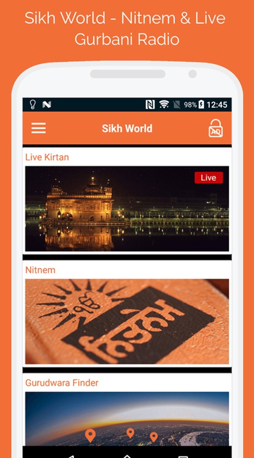 Sikh World – Nitnem & Gurbani app is one of the best app for Gurbani radio stations streaming online 24/7. Play world class radio stations and listen live Kirtan, Katha & Gurbani anytime, anywhere. Listen to your favourite Gurbani radio stations live and enjoy the best music online. Get all the Banis at one place in the single app now with near by Gurudwara finder feature in the app.