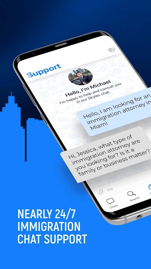 Simply download Skylex, verify your phone number, navigate to the Support chat Tab and ask your legal question. Our professional legal assistant will connect you with an immigration lawyer specializing in your kind of case.