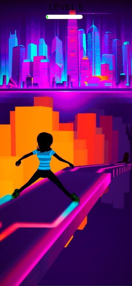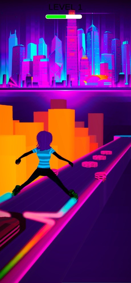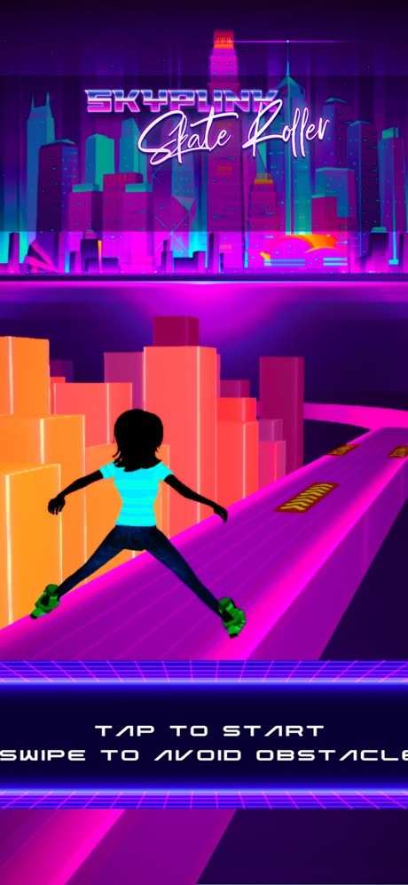 Imagine in a cyberpunk environment, above the skyscrapers, following the neon lights and avoiding the obstacles!