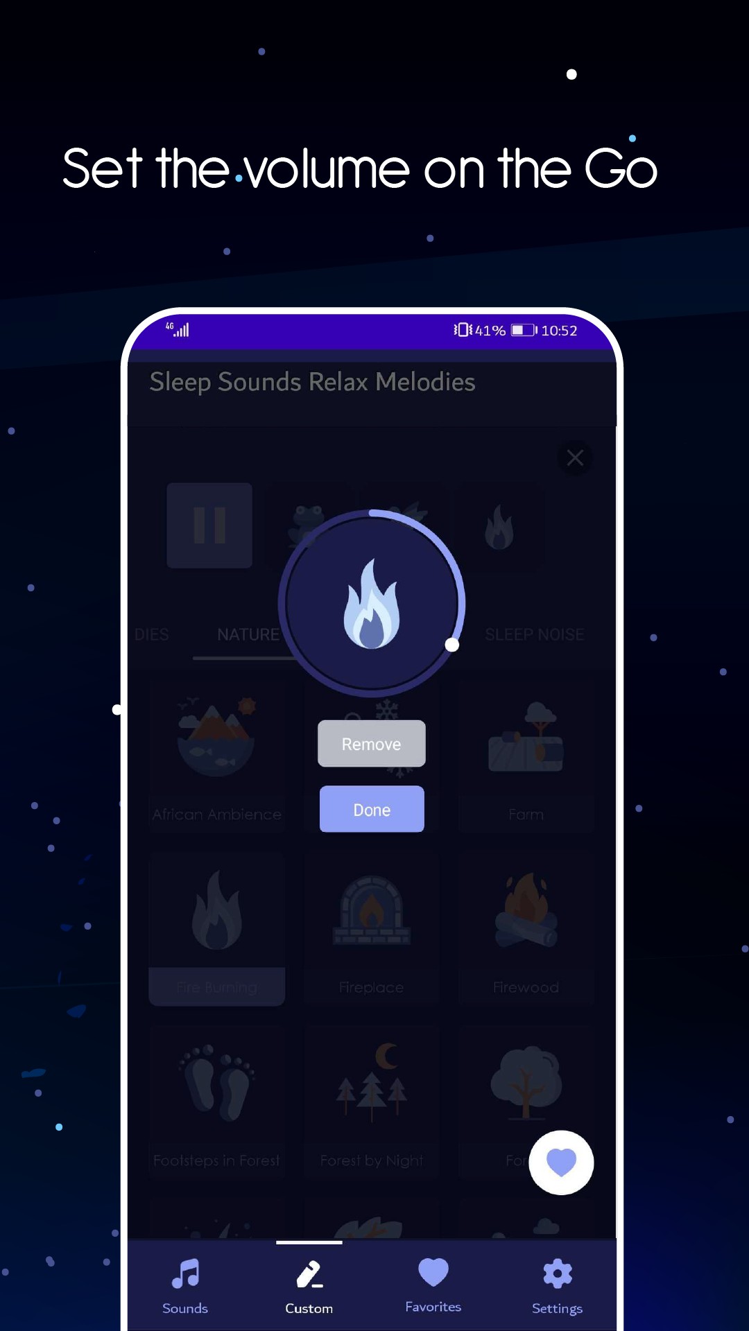 Users can select from a variety of sounds and music like white noise, city sounds, or instruments. Schedule the timer that will automatically stop the sleep sound. Relax and take control of your sleep and relieve stress, insomnia, and tinnitus. Use white noise, nature sounds, relax melodies and soothing sounds to create your own mixes.