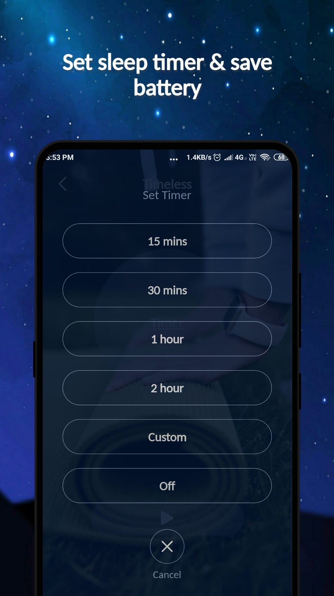 You can schedule the timer that will automatically stop the sleep noise after you fall asleep. Sleepy does not require an internet connection so you can use it anywhere in a sleepy mood without worrying about the data.