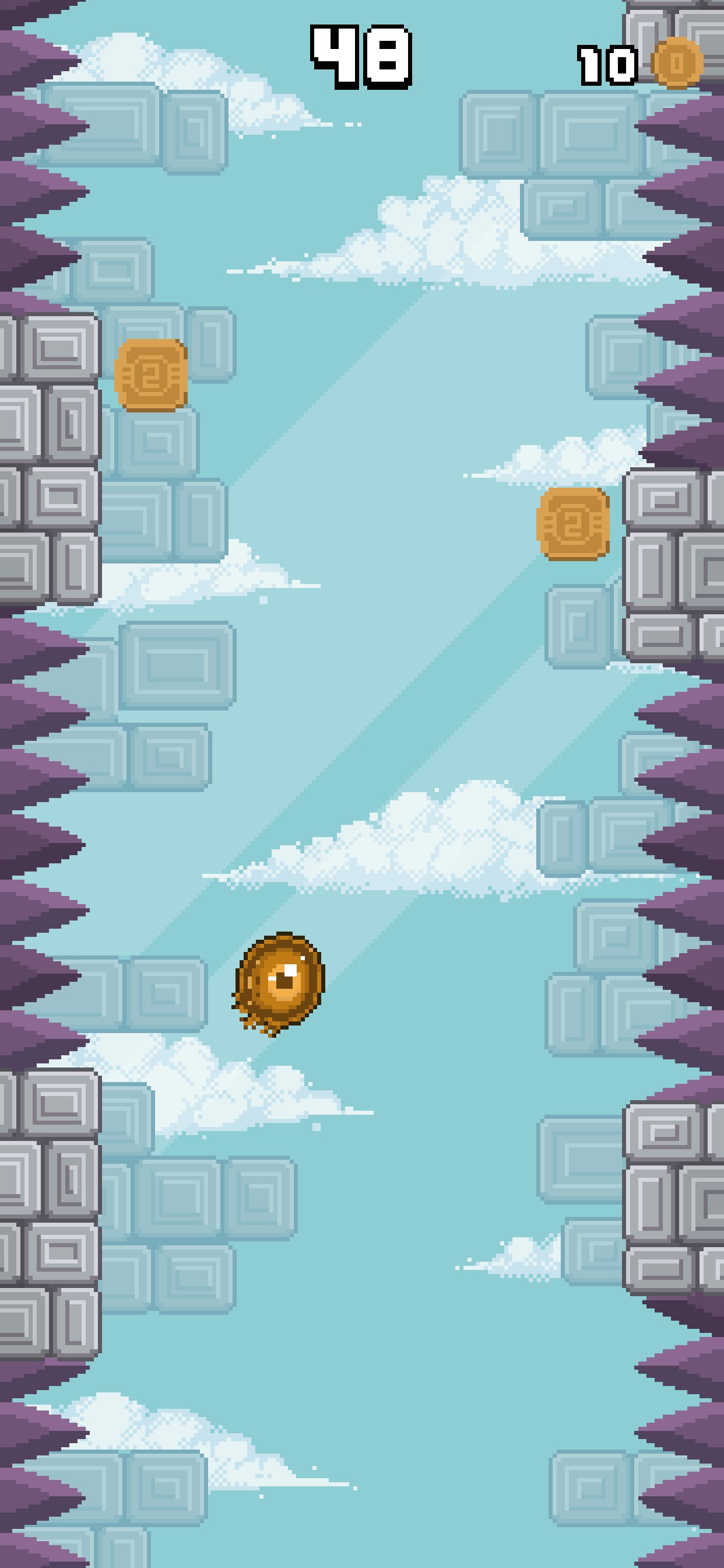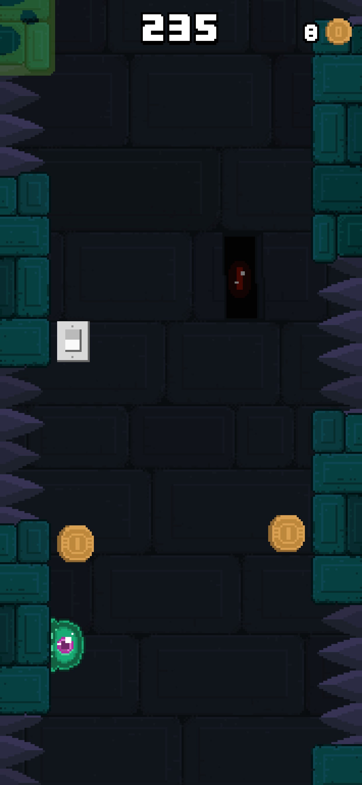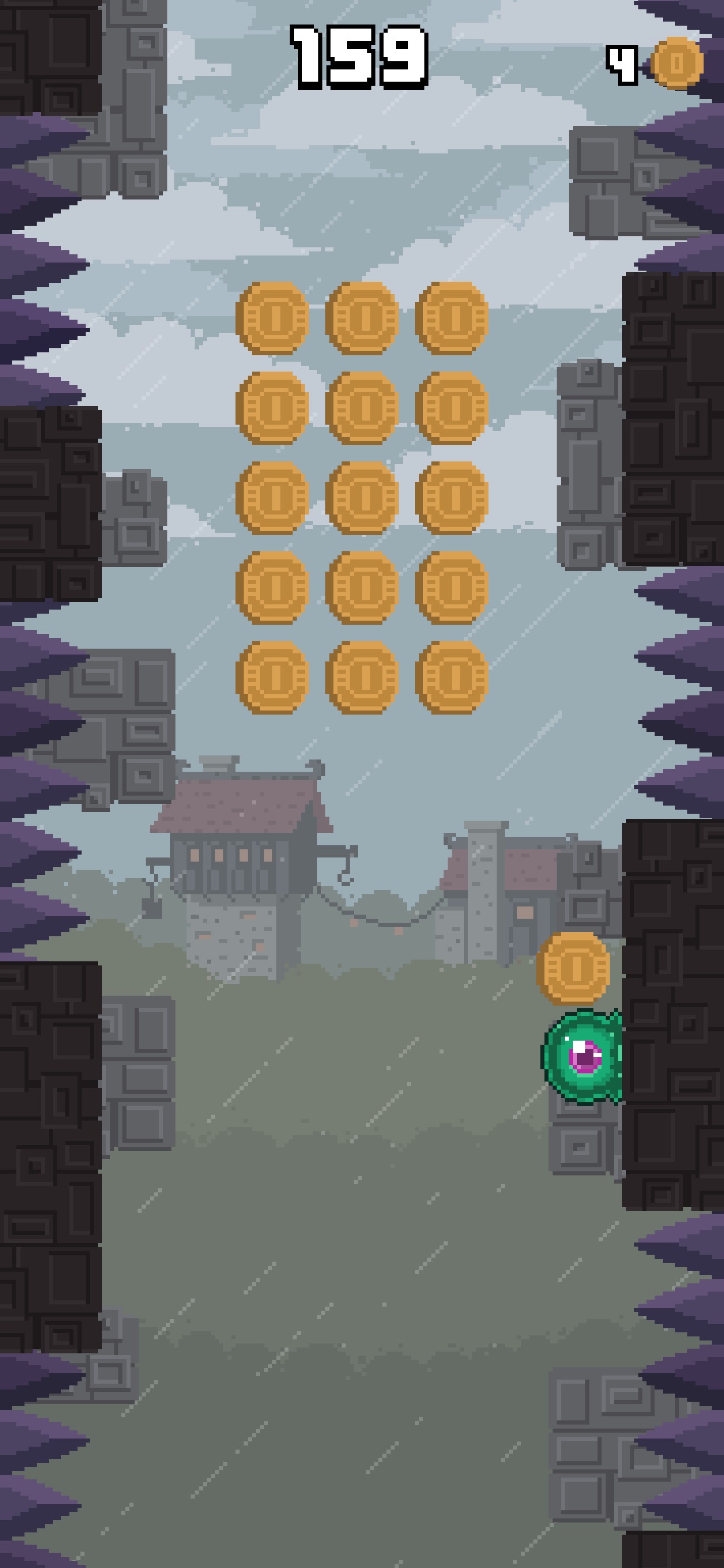 Playing a slime jump from wall to wall, but be careful, don't hit the spikes!