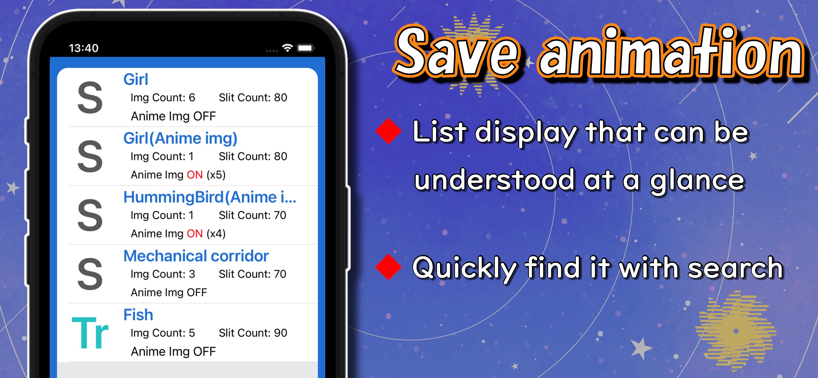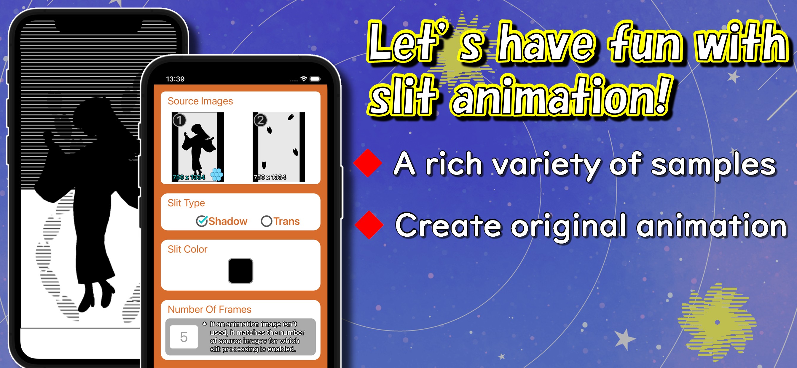 This app allows you to enjoy simple animation using slits.