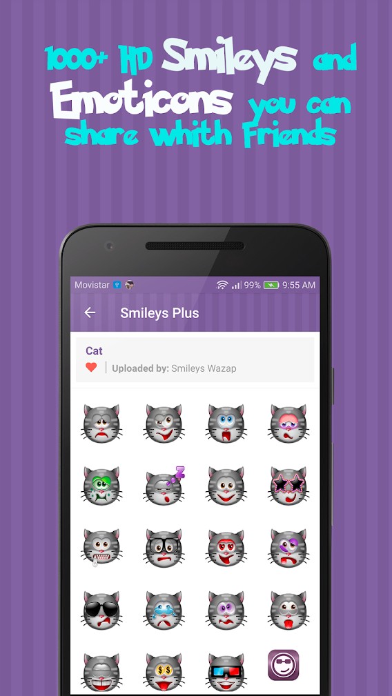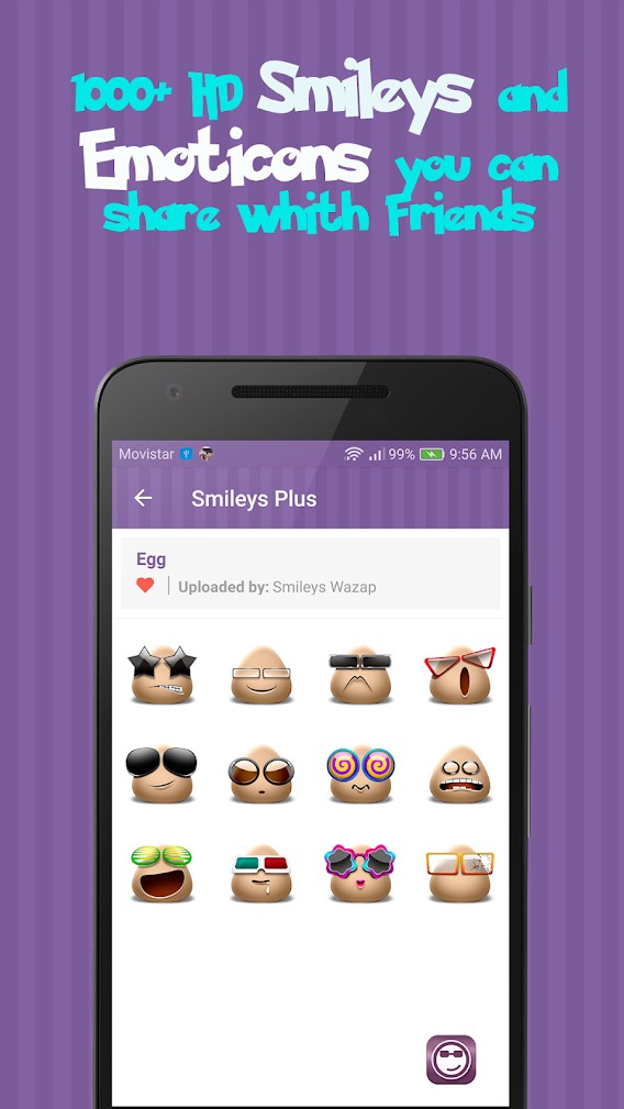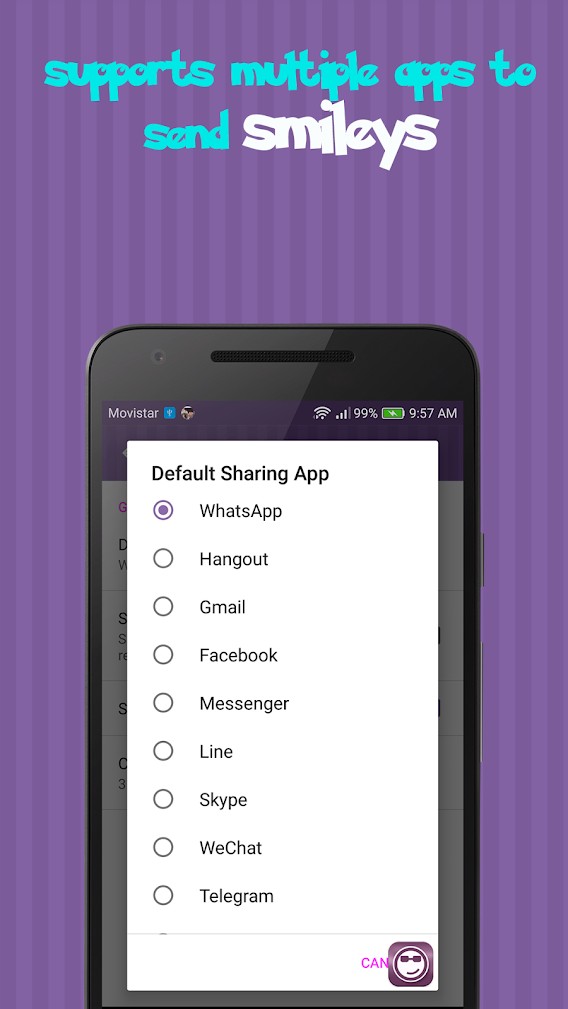 Smileys for Whatsapp will allow you send amazing smileys and emoticons to your contacts. All this in a quick and easy way either from our app or your preferred messaging app using our shortcut. You will be able to enable or disable it in the Smileys HD settings.