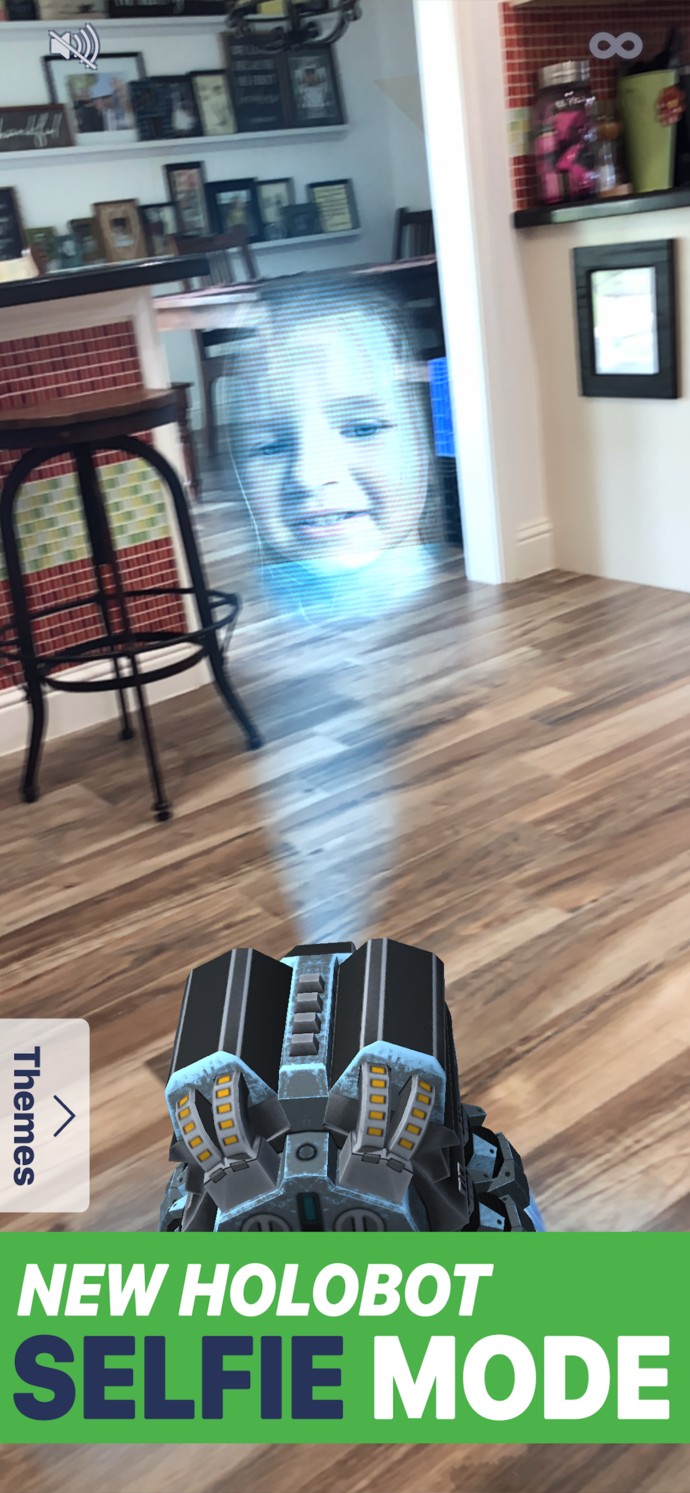 Send recorded holograms to friends and family and appear right in their home. Share your AR holograms from the app and the recipient gets the message with the full AR experience. Try the HoloBot theme and beam your message just like the rebels did a long time ago in a galaxy far, far away... Wishing someone Happy Birthday? Use the birthday theme and your hologram will include dancing presents and balloons! Unlike other message apps, SnapAR uses the video you capture and makes it appear in the room along with your selected theme. Record your child singing Happy Birthday with SnapAR, then share it and they will see them singing right in the room with them. Through the magic of Augmented Reality (AR), connect with friends and family in a new and exciting way.