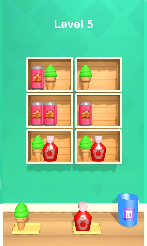 Drag, and rearrange match items with addictive sort puzzle matching.