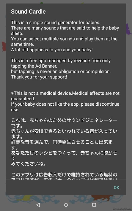 ※This is not a medical device.Medical effects are not guaranteed.There are individual differences in the effect of this application.Please do not let the baby hear the sound of the application with earphones.