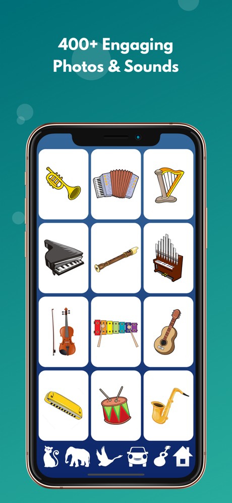 144 amazing pictures + sounds of: animals, vehicles, musical-instruments and household items