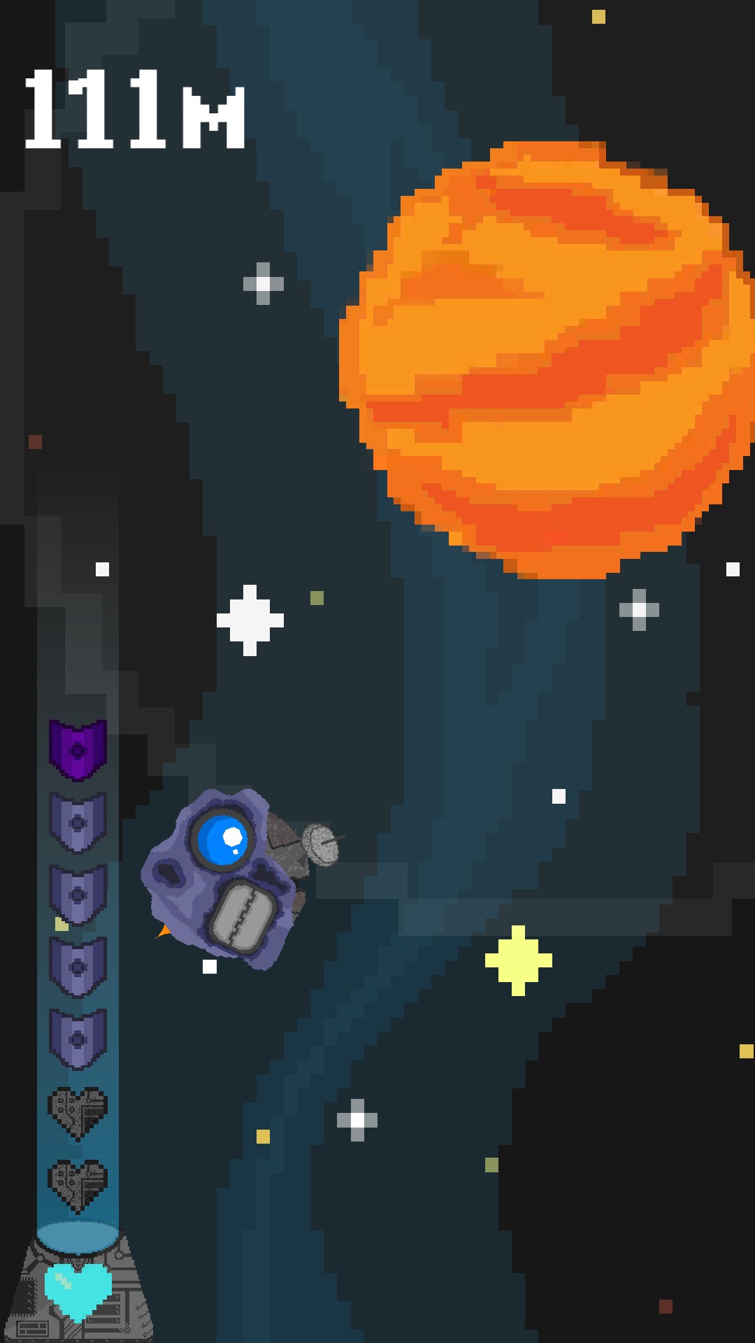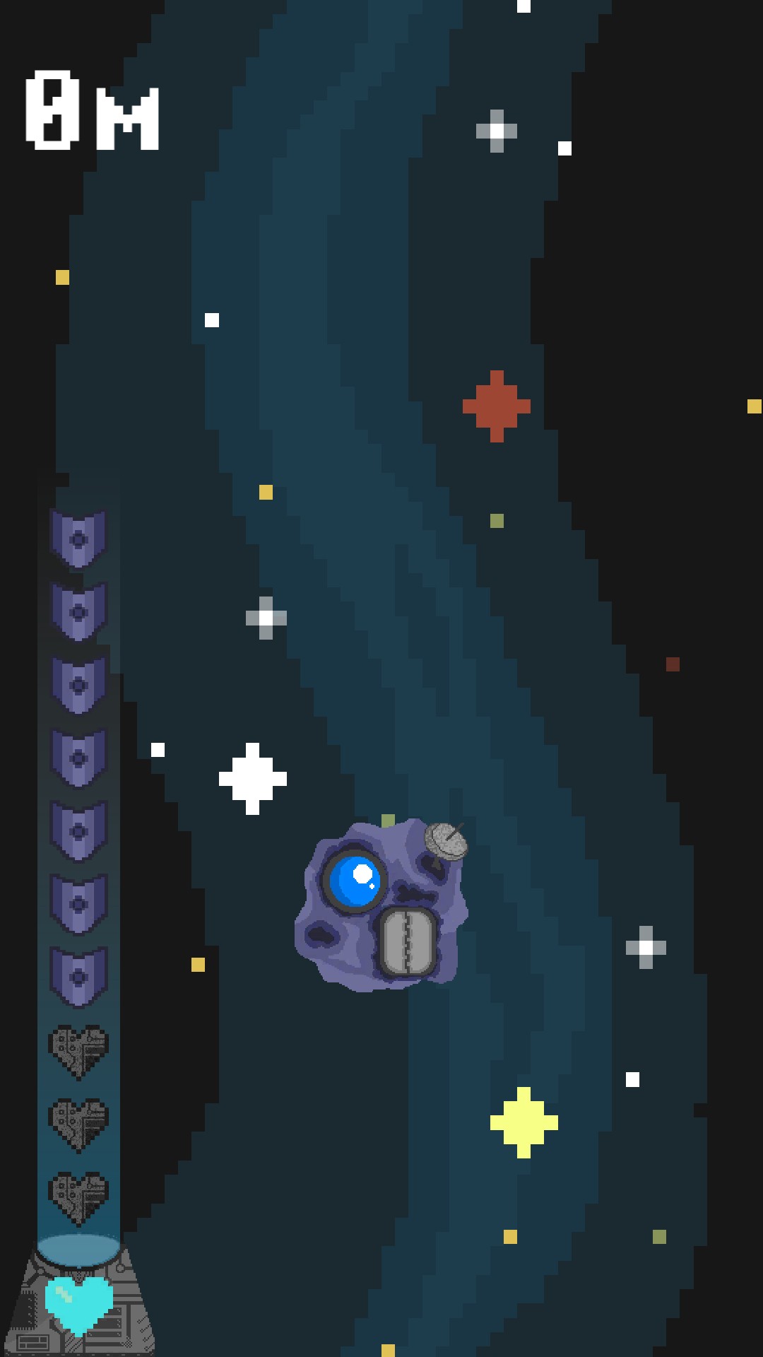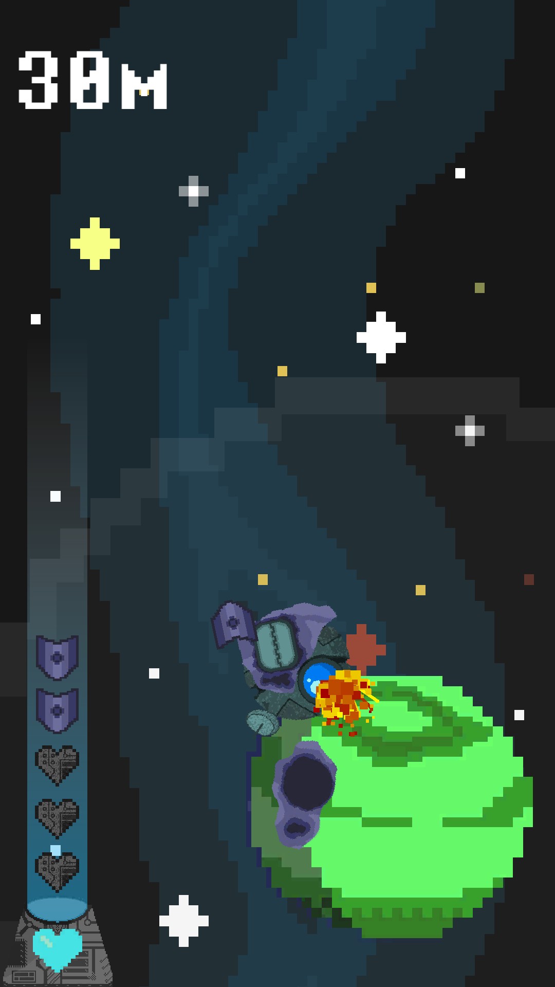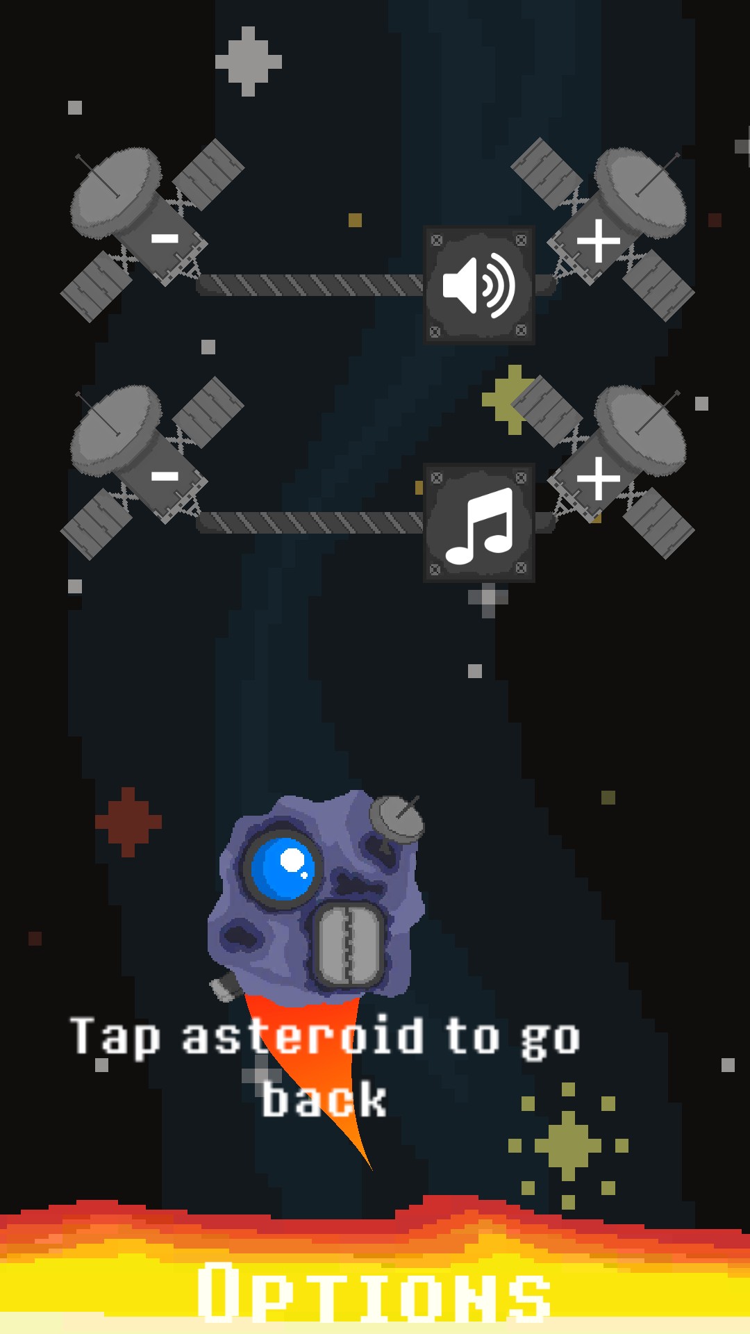 Space Bounce is a simple game, with simple mechanics and a simple purpose: to score the highest score. All you have to do is to dodge the asteroids and the planets, and if you hit them, you will lose some hp (which is in the left of the screen), but if you do not you may conquer the Space!