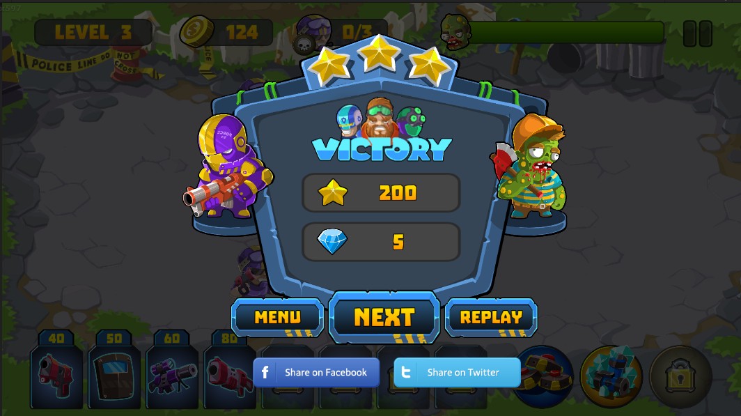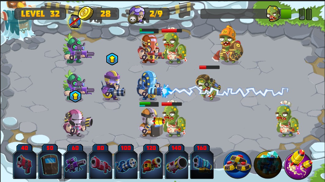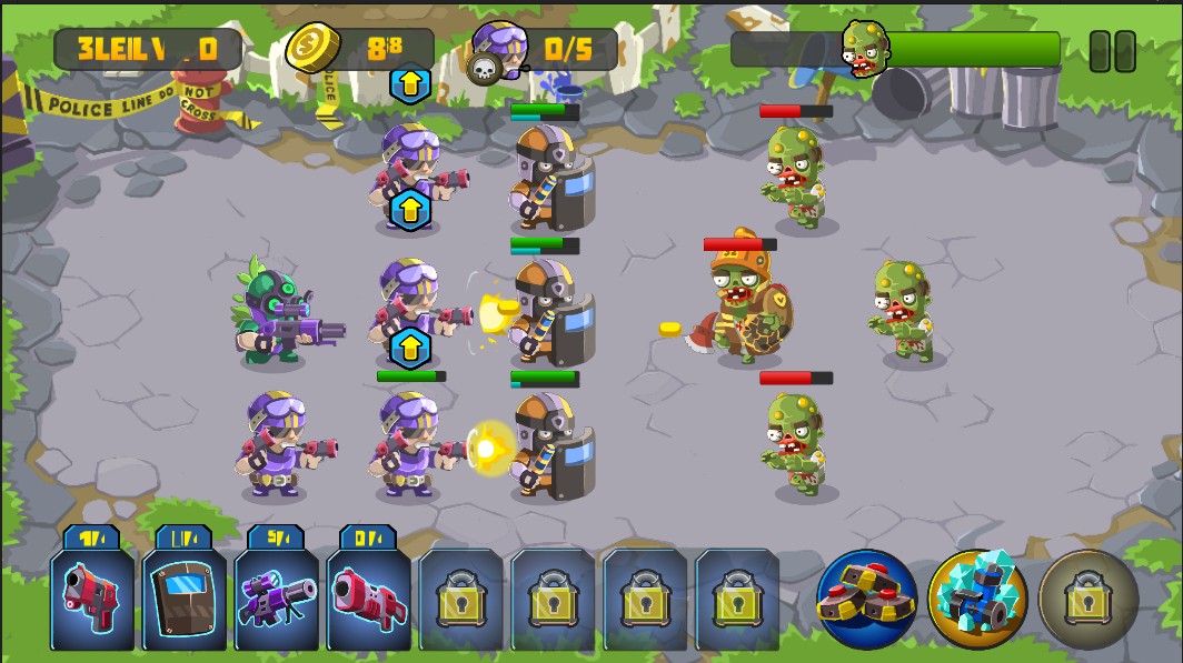 - 9 type of zombies with different ability (freeze unit, suicide bombers...)