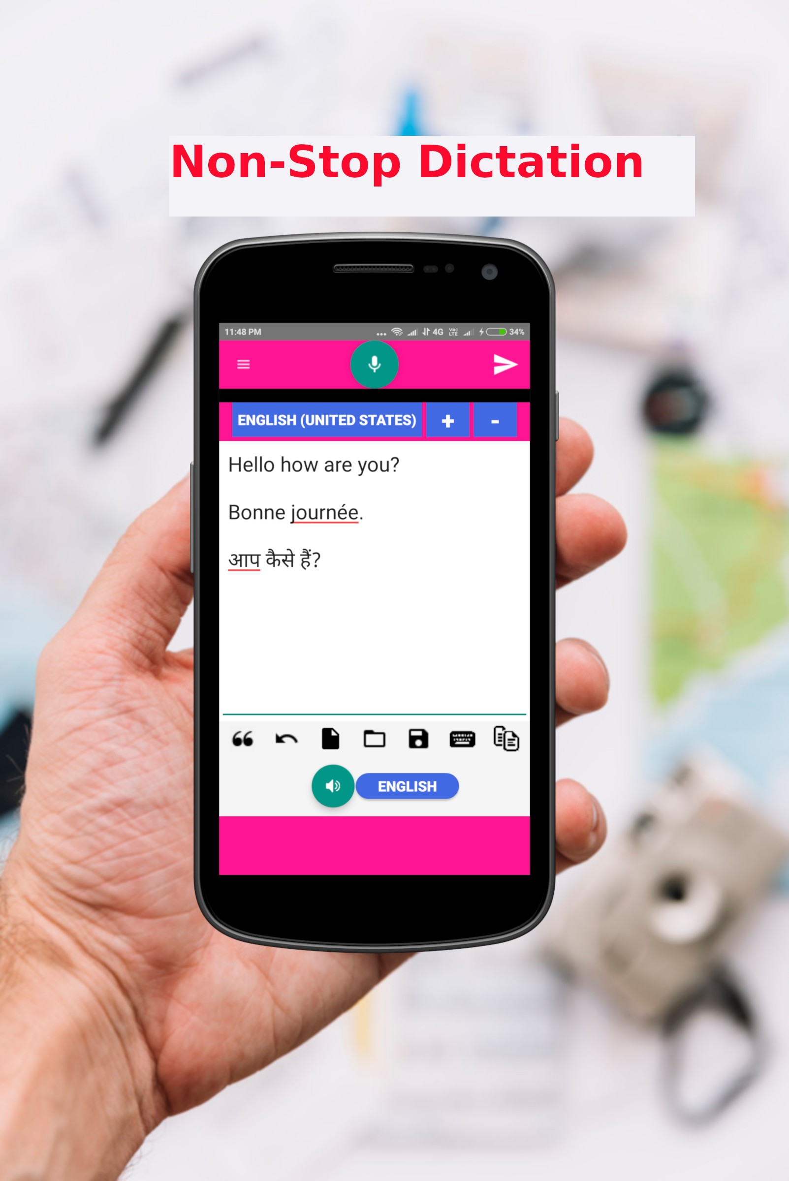 * Non-stop & continuous voice recognition. So you can relax and focus on your thoughts and content to dictate.