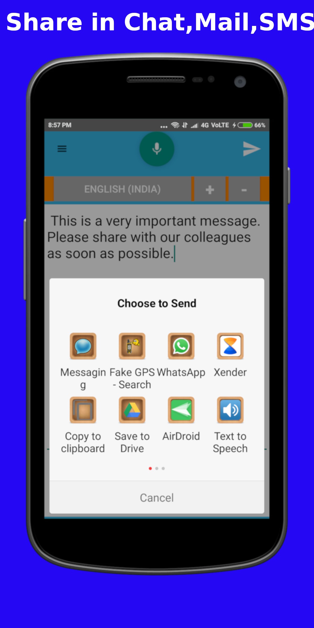 Speech to text & voice typing is a simple & easy to use app for dictating notes which can be saved in file, sent as an SMS, chat or Email or copied and pasted into another app.