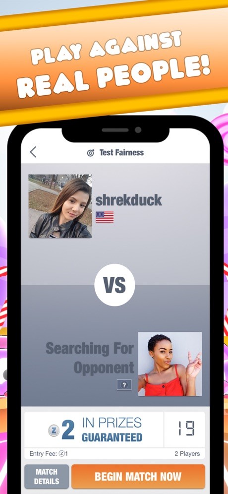 • Face off against players of similar skills on the Skillz network!