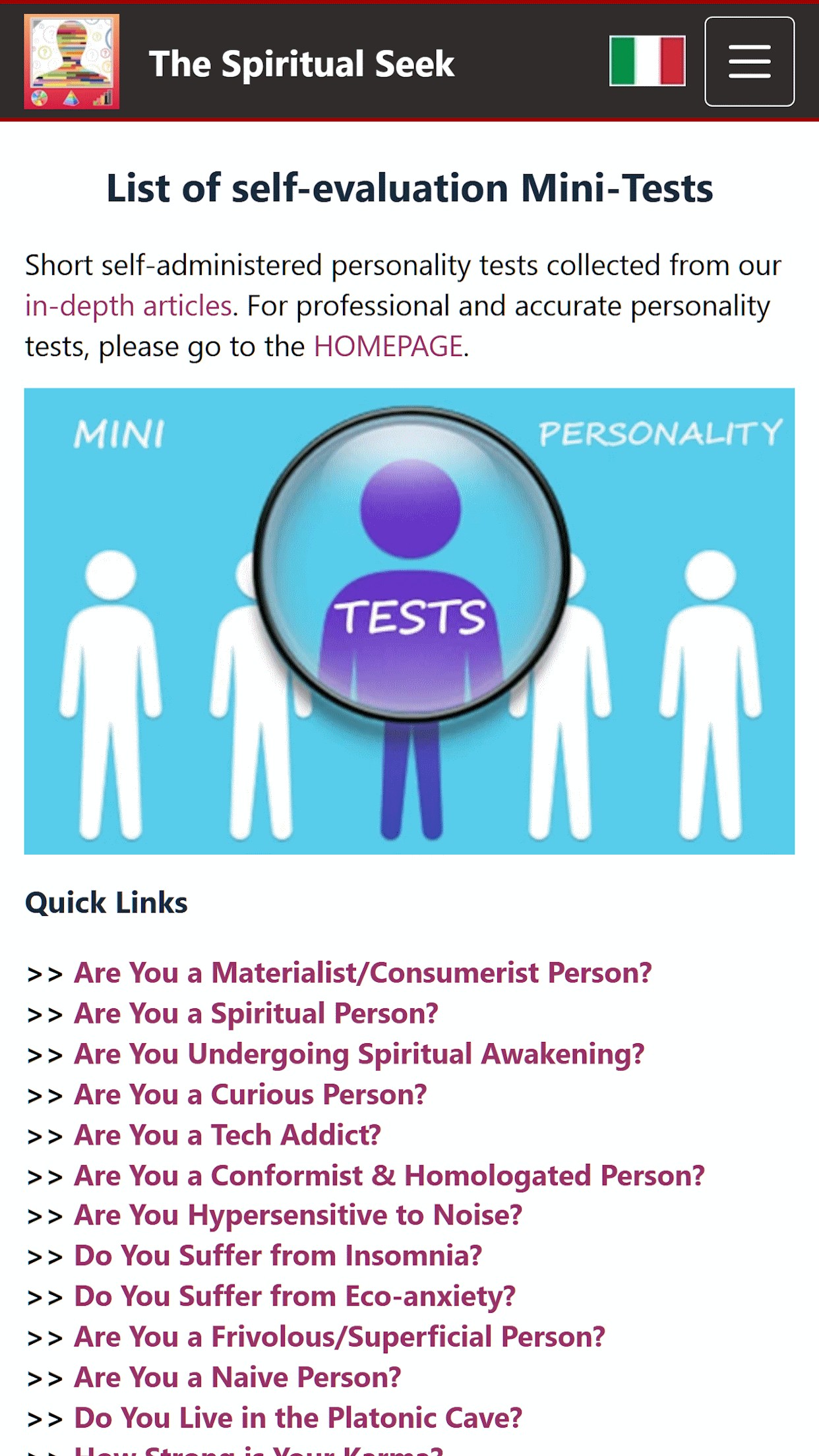 Spirituality and Psychology Portal with many unique articles and personality tests, such as the awareness test and the wisdom test.