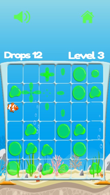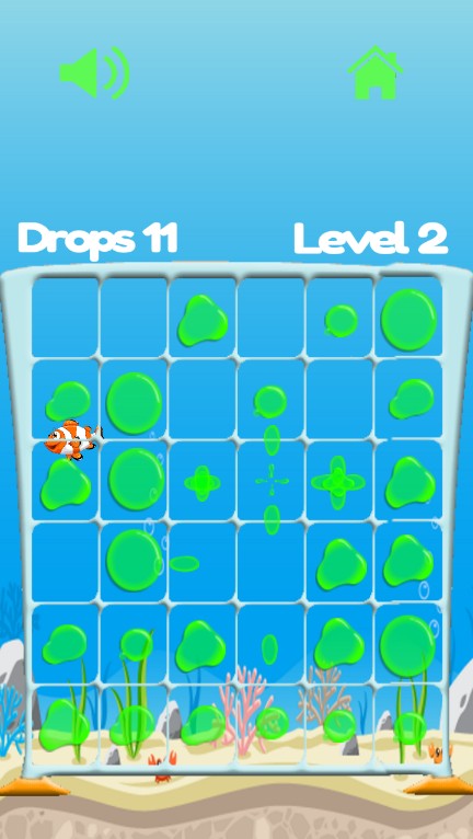 * Touch the screen to add drops to blobs, make them grow larger and then explode, thus clearing the game board.