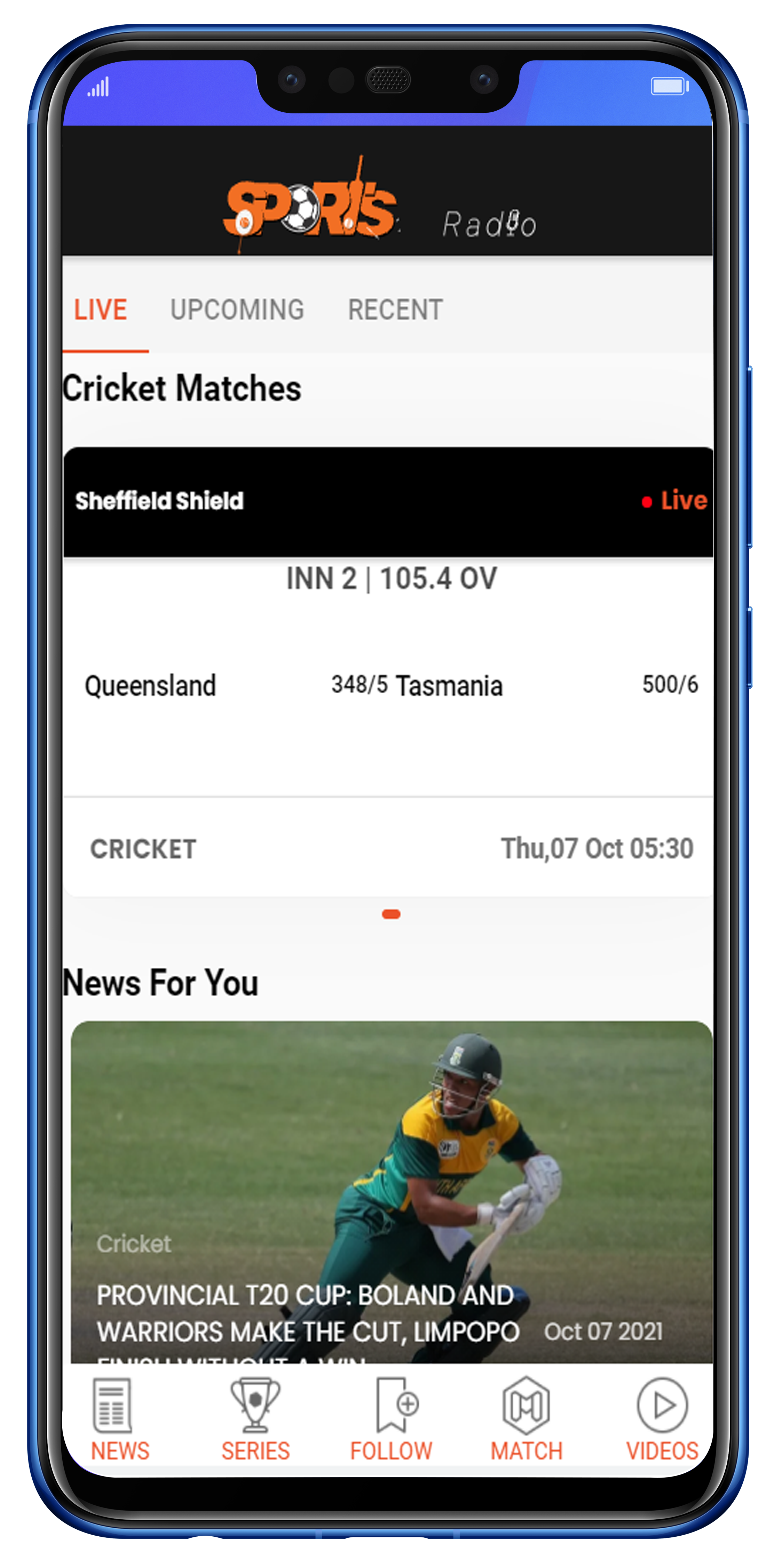 Get Latest Cricket Scores with live animated video widget at Sports Radio App. Check the live cricket matches, Match Highlights Videos and live updates of cricket, live commentary, live score, upcoming cricket live matches, ball by live Voice commentary, live cricket schedules, cricket match analysis and cricket tournaments and live rj commentary and more of International & Domestic matches.