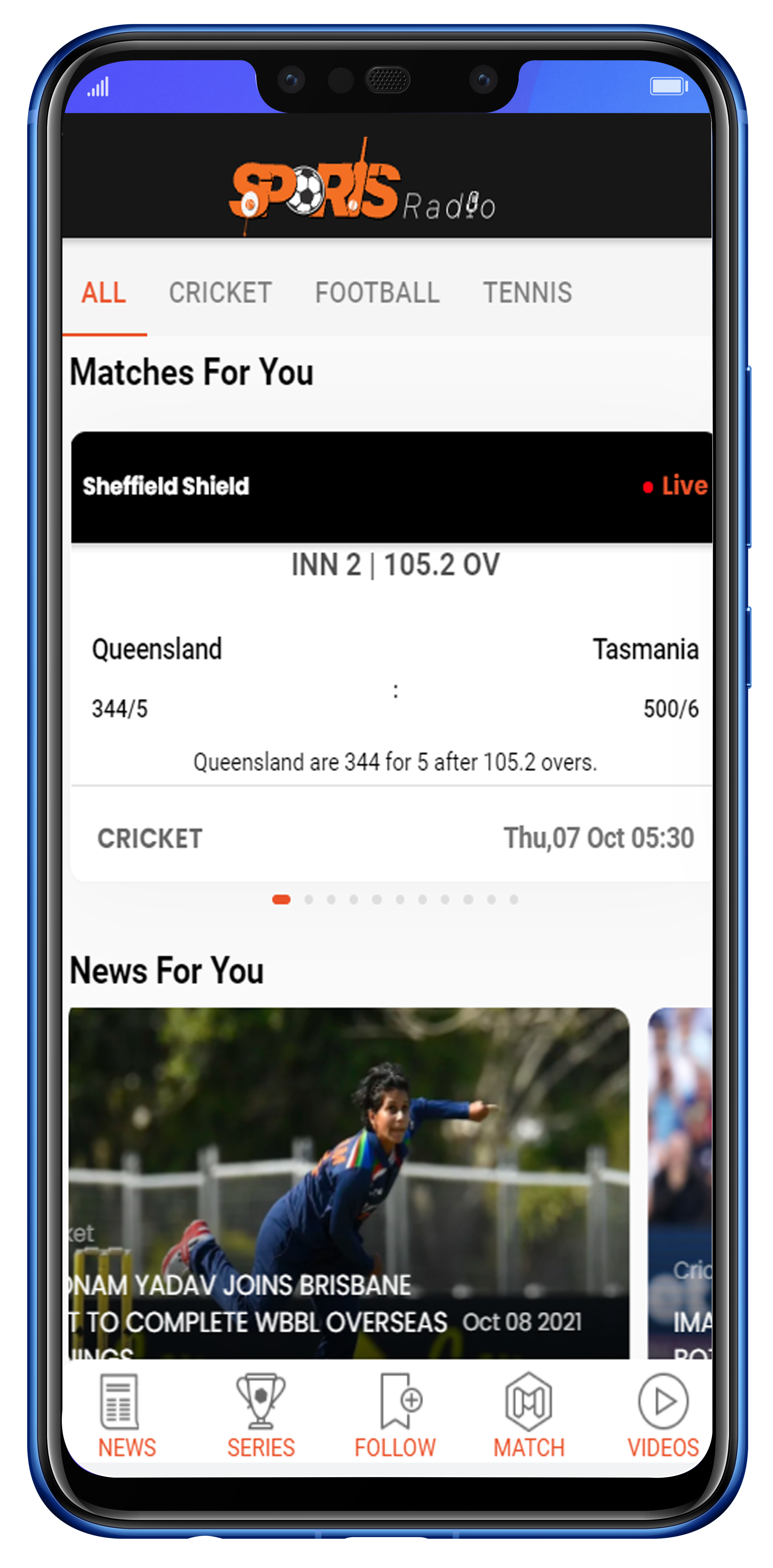 Live Cricket Scores, Upcoming Cricket Matches, Latest Cricket News, Match Reports for International and Domestic cricket leagues. Follow live Cricket scores on SportsRadio.App