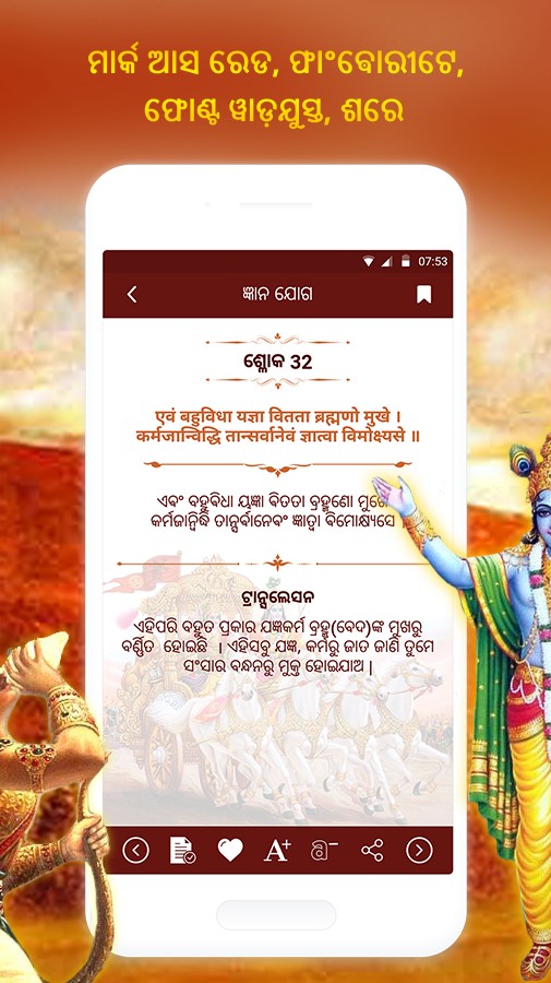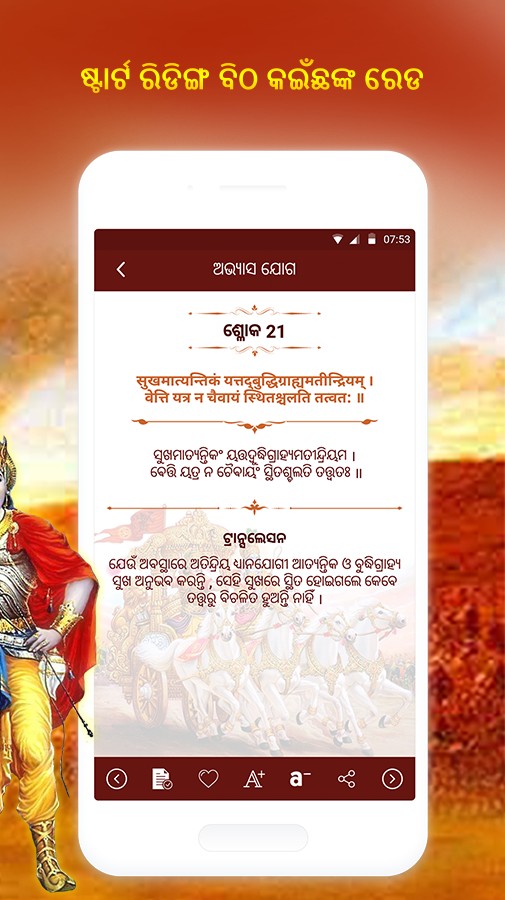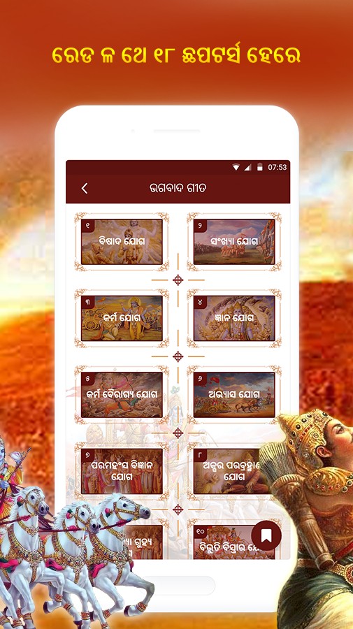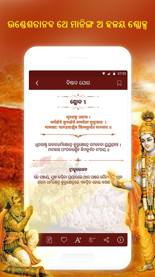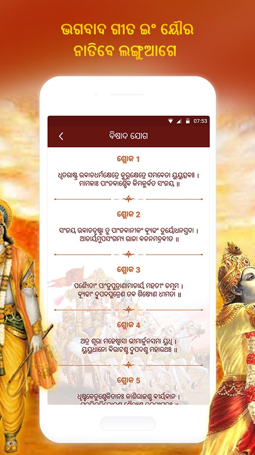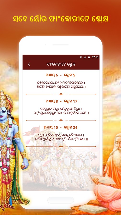 In this app, we are delivering you the translation of ‘700 Sanskrit Shlokas’ from Shrimad Bhagwat Geeta in the Oriya language!