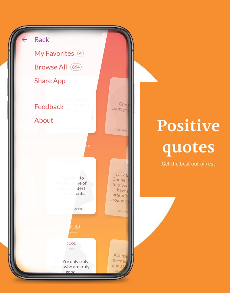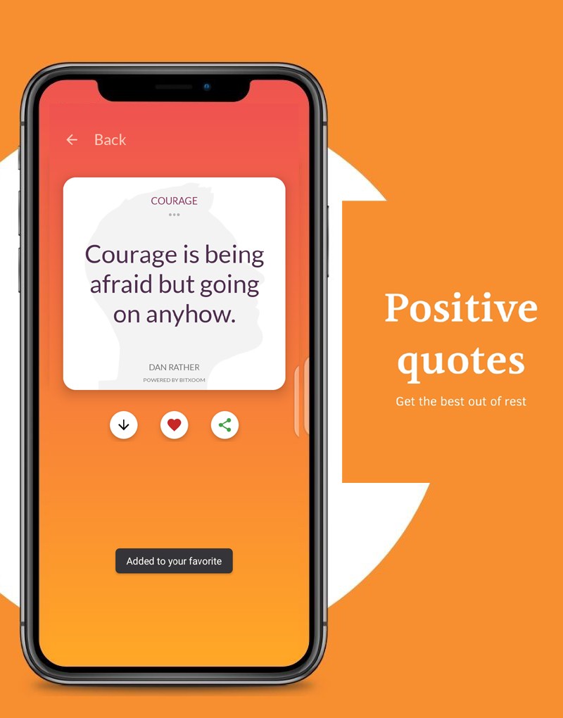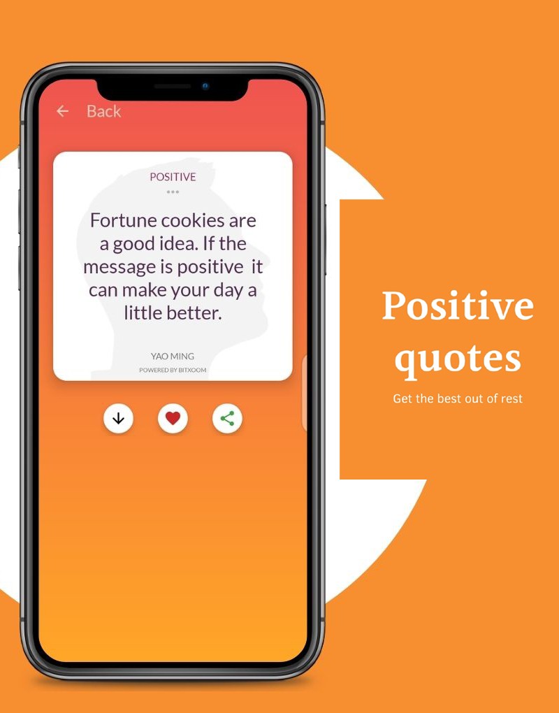 In “stay positive quotes | m quotes | positive quotes” App you can find a Big collection of Positive quotes to make you Stay Positive, and dreaming big, Courage quotes for you to boost your confidence and face your fears, Good quotes to find hope & light in the darkness, Forgiveness Quotes for a more peaceful life, motivational quotes to make you humble.