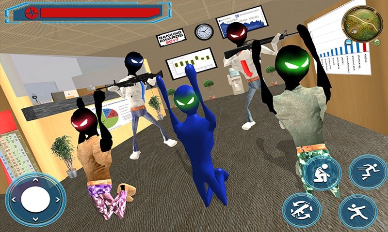 Get ready for the action and shoot the thugs or robbers who are trying to rob the city bank in this Stick Royale Bank Robbery: City Crime. You play this action simulator as stick heroes squad and save the innocent civilians which are stuck in the bank. Fight with bank robbers but beware from these dangerous criminals and save the hostages. You need to take charge and shoot these evil stick gangsters. Bank robbers are equipped with more advanced weapons and ready to shoot you.