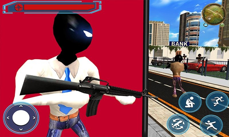 This action simulator is full of entertainment and thrilling missions are waiting for you. The robbers enter in the grand city and rob the bank but this time stick hero squad stop them to rob the bank in this city battle simulator. The evil sniper shooters are trying to steal the Cash from grand city bank. Stop the bank robbers and shoot them before they take all cash to their secret place. Shoot all the bank thugs with the help of classic weapons and save the innocent hostages.