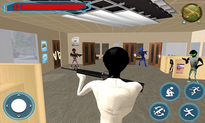 Stick Royale Bank Robbery: City Crime is action game with thrilling gameplay where you play as elite stick hero are shoot the bank robbers & save the civilians. Choose your favorite stick hero and shoot the thug mafia with the help of your stick heroes allies in this epic battle simulator. Use your combat skills to strike down these evil robbers and win this ultimate war. Explore its amazing bank environment and find more powerful riffles placed somewhere in the battleground. In this Battle Royale, you need to save yourself from evil enemies which spread in the battlefield. Shoot more and more stick enemies to unlock more advanced characters.