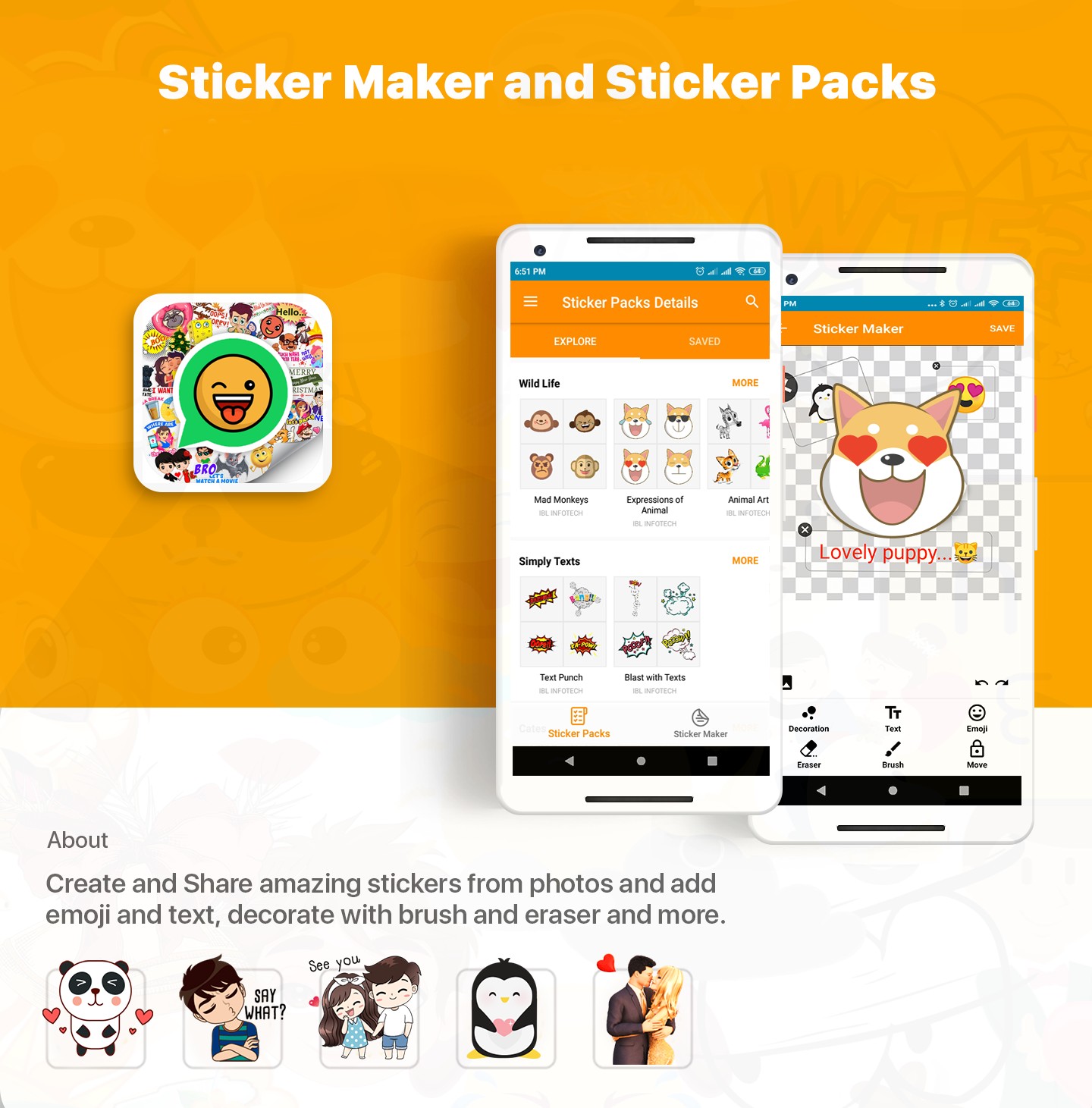Whatsapp Stickers App is the best and latest Stickers application available in the play store. You will never regret downloading this awesome application on your android phones.