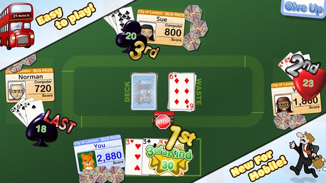 Play against the computer, or try the all new-for-mobile multiplayer! Challenge your friends or play against random opponents, and see if you can become a Stop The Bus champion. With extensive statistics to keep track of your best games, Stop the Bus is simple to play, with clear graphics, customisable cards and a full tutorial to get you started.