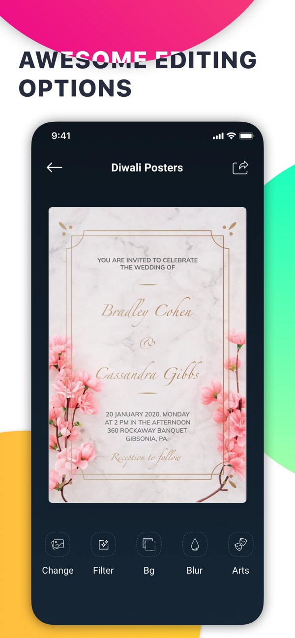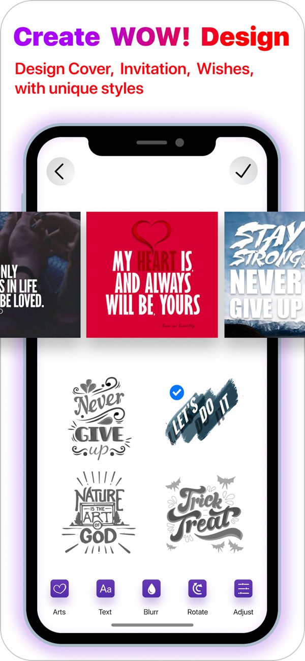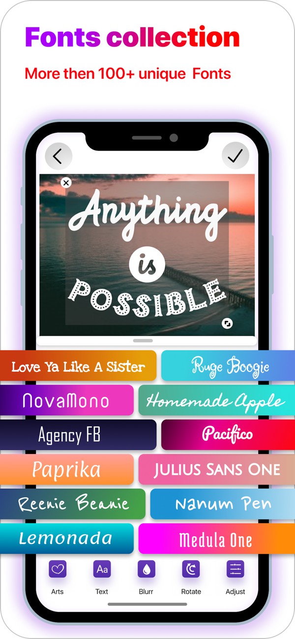 Phont : Flyer and invitation maker lets you add text on photos and pictures with amazing fonts. Now you can your photos with custom fonts into memorable typography poster. Choose your favorite pic to create memes, add quotes, add captions and make cool poster.