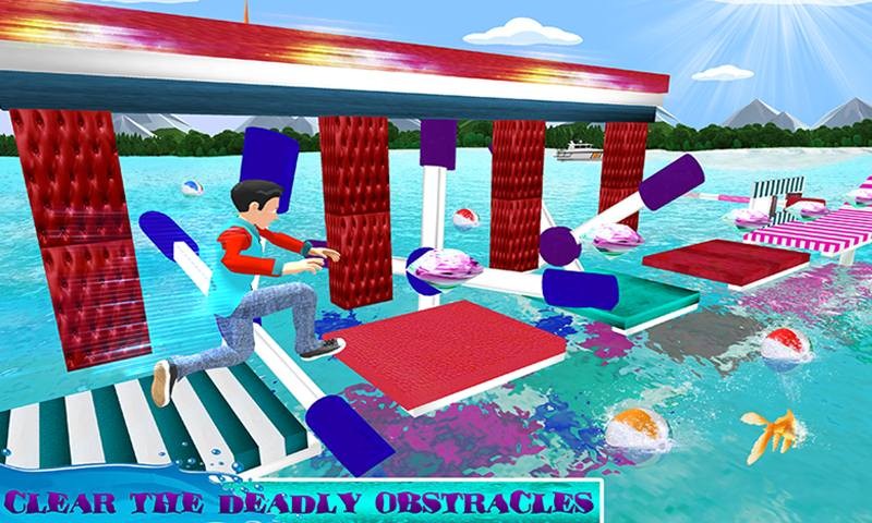 The programmed machines are controlling these unique obstacles in the stunt water park like, punching bags, smashing rollers, slippery bubble balloon, moving balls, tricky shaking bridges, and many more hindrance in this water game Stunt Man in Water Park. Avoid from colliding with these hard obstacles otherwise, you will lose the game.
