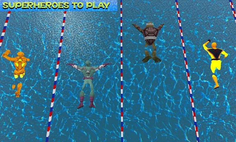 Welcome to Super hero World Swimming Tournament where you play as super hero and win the swimming championship! Practice water game in a realistic 3D cool water environment! Select your favorite team and hero to play this swimming tournament and beat all superheroes. This super hero swimming championship game is not easy at all. Heroes Water Swimming Championship is full of fun racing just swim fast to win this tournament! Join the biggest world tournament ever and have fun playing super hero as a diver in Swimming Pool Race! Get ready to the really superb rush!