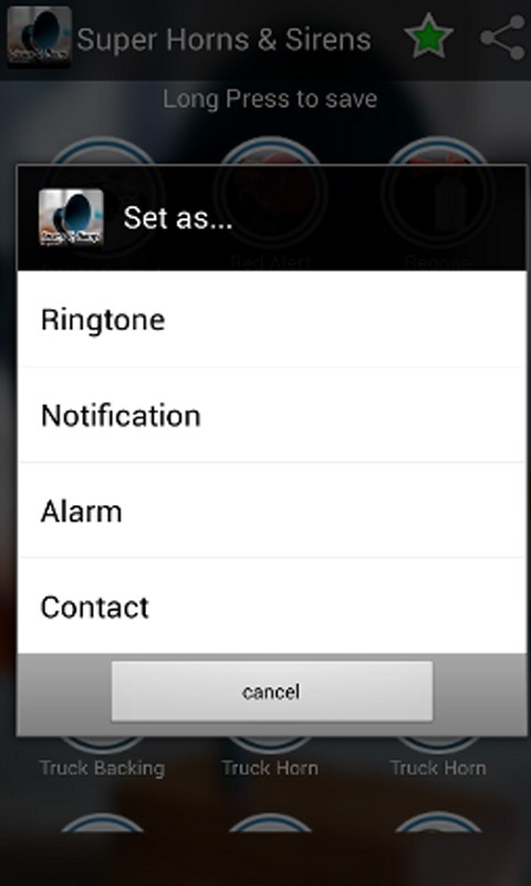 • Easily set horn as a default loud ringtone, alarm, SMS or notification.