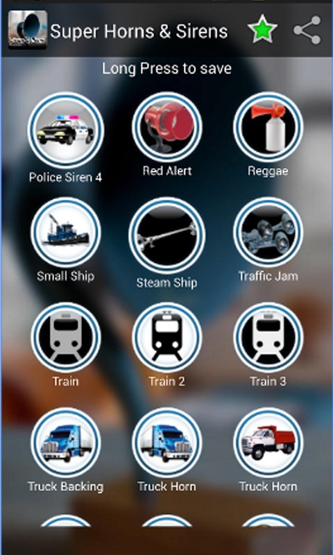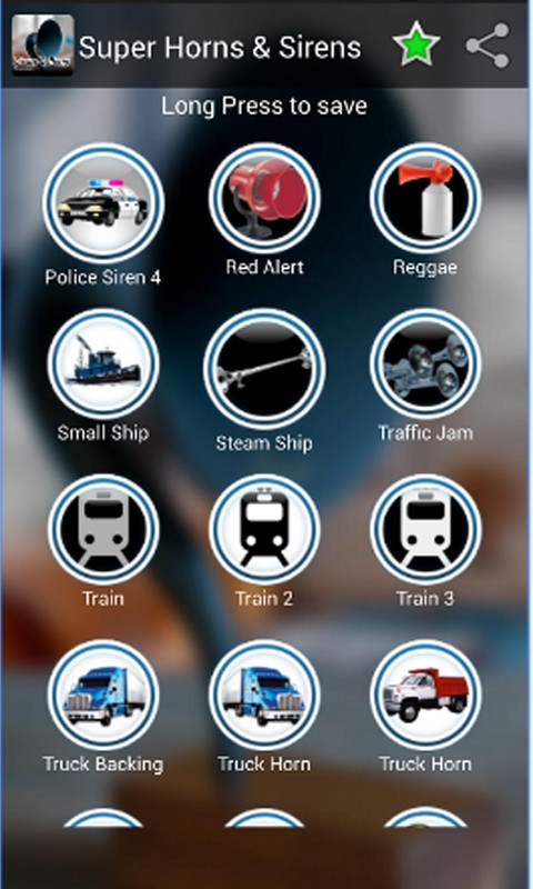 Super Horns and Sirens is an amazing app that gives you a variety of horns and sirens sound, you can select from them according to your taste. Super horns offer some of the most interesting and loudest phone alerts that you ever heard. It is a cool selection of crazy horns, loud alarm sounds and the funniest ringtones for smart phones. Are you looking for an alarm that will kick you out of bed every morning? Enjoy these crazy sounds of police car sirens, train horn, desi truck horn, air horn, cool air horn, car horn, siren alarm, smoke alarm, emergency sound, warning sound and much more with the loudest notifications! Check out new siren sounds and ringtones with loud funny sounds right now! Everyone around you will freak out whenever someone contacts you on your mobile phone. Super horns are a loud, amusing and extremely cool way to show your funny side every day! Download this new amazing noise maker app free.