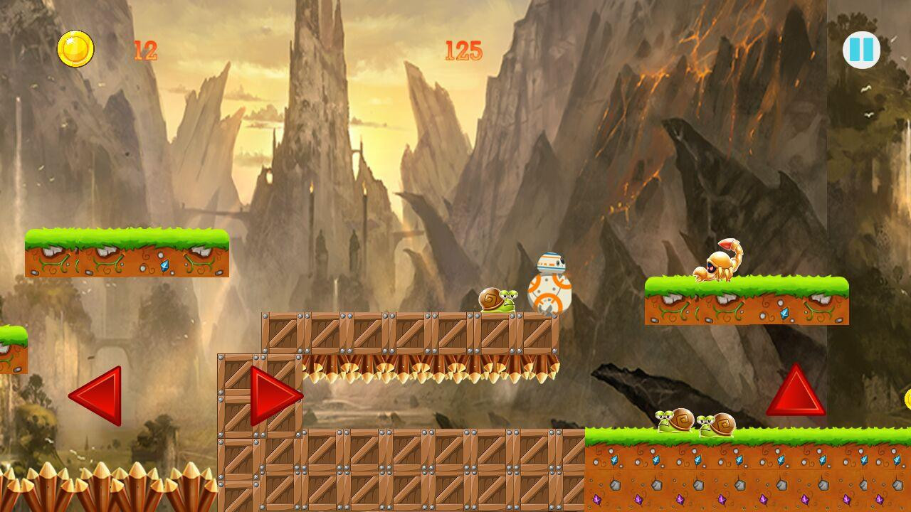 bb8 star wars adventure is very funny game and easy just Tap to keep running and jumping and make bb8 .