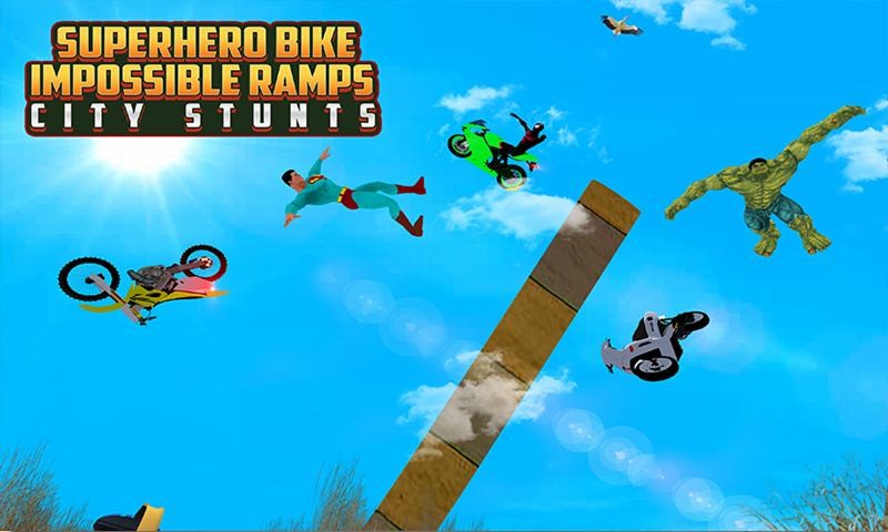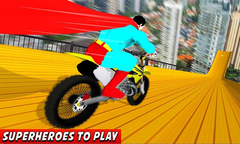 Superhero Bike Impossible Ramps City Stunts combines the realistic and fun driving physics to create the best bike driving simulator on mobile with its advanced super bike driving physics engine. Superheroes Bike Stunts is amazing, thrilling and exciting game for all bike rider. The Superheroes bike impossible Stunts requires you to show extreme speedy bike stunt skills on tricky tracks to make your real hero in this challenges game. The skydiving stunt bike racing game will be serving best for hardcore vehicle used in this mega ramp game.