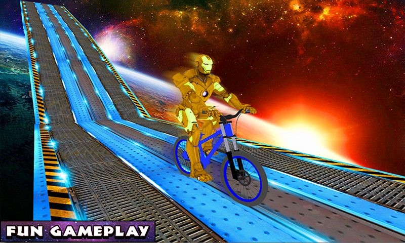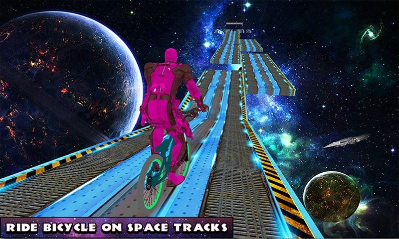 Superheroes BMX Bicycle: Impossible Space Tracks is exciting game for all bicycle riders or superheroes fans. This is a new simulation bicycle Game of 2017 where you can enjoy impossible space racing on crazy cycling. This superhero BMX bicycle offers you a wide variety of dangerous cycle tricks, mid-air ramps, and high jumps on the crazy impossible space tracks.
