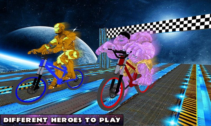 Welcome to the space where you ride an amazing sports cycle in this Superheroes BMX Bicycle: Impossible Space Tracks and enjoy the cycling in space. Superhero bicycle rider complete interesting levels on high tracks in the space. Superheroes like iron hero, dead hero and monster hero are ready to ride the bicycle in the space on impossible dangerous tracks. Get ready for impossible racing game adventure with real BMX bicycle to feel the cycle thrill on sharp impossible lanes.