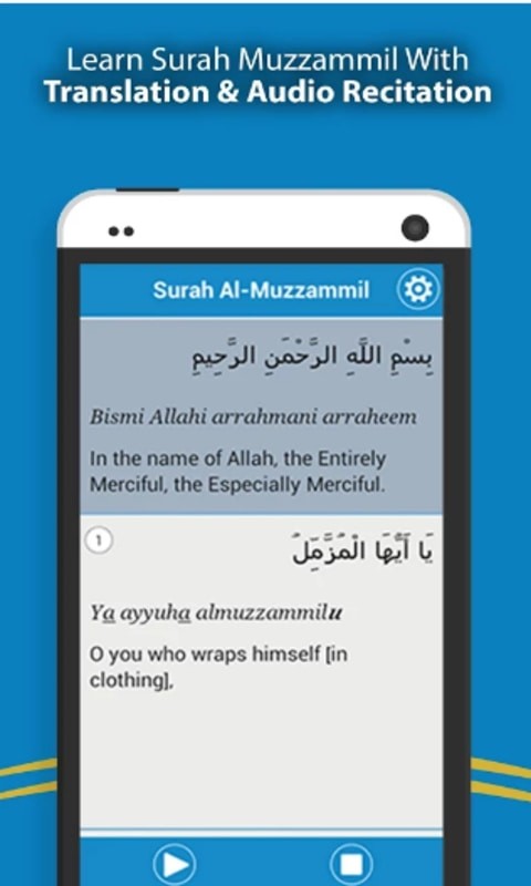 Surah Muzammil is an Islamic Learning App featuring the 73rd recitation, translation and transliteration of Surah Muzammil to help Muslims in accessing the meaning and knowledge of this Surah of Quran with ease. There is great importance related to Surah Muzammil which is the 3rd Muhammad (PBUH).It is narrated from the Holy Prophet (PBUH) that a person who recites this Surah will never face bad times. The person who recites it in the Isha or Tahajjud prayers will always remain pure of heart and even die while he is in a pure state.